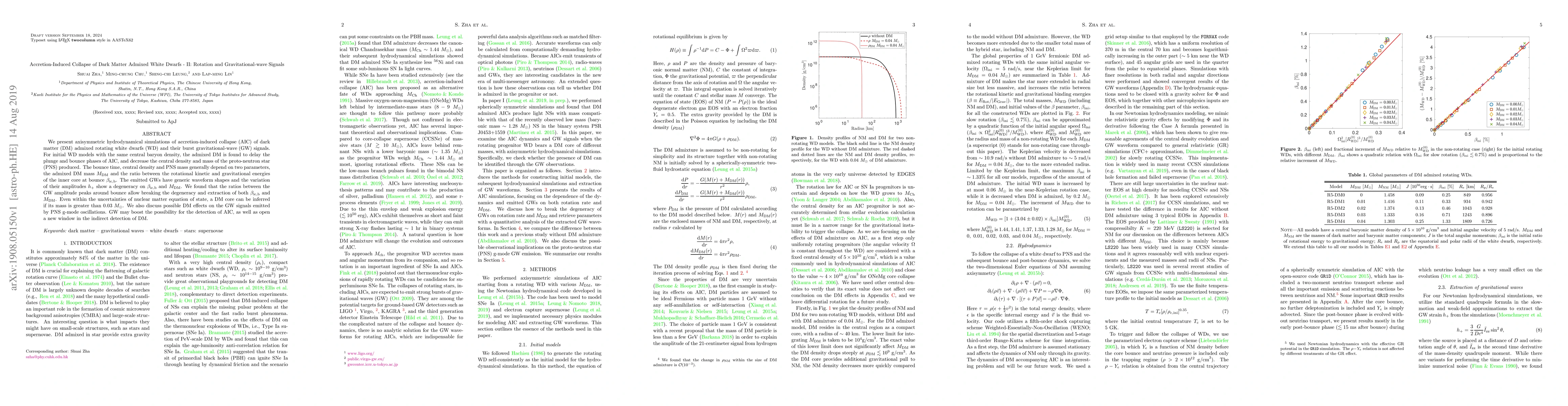 We present axisymmetric hydrodynamical simulations of accretion-induced collapse (AIC) of dark matter (DM) admixed rotating white dwarfs (WD) and their burst gravitational-wave (GW) signals. For initial WD models with the same central baryon density, the admixed DM is found to delay the plunge and bounce phases of AIC, and decrease the central density and mass of the proto-neutron star (PNS) produced. The bounce time, central density and PNS mass generally depend on two parameters, the admixed DM mass $M_\mathrm{DM}$ and the ratio between the rotational kinetic and gravitational energies of the inner core at bounce $\beta_\mathrm{ic,b}$. The emitted GWs have generic waveform shapes and the variation of their amplitudes $h_+$ show a degeneracy on $\beta_\mathrm{ic,b}$ and $M_\mathrm{DM}$. We found that the ratios between the GW amplitude peaks around bounce allow breaking the degeneracy and extraction of both $\beta_\mathrm{ic,b}$ and $M_\mathrm{DM}$. Even within the uncertainties of nuclear matter equation of state, a DM core can be inferred if its mass is greater than 0.03 $M_{\odot}$. We also discuss possible DM effects on the GW signals emitted by PNS g-mode oscillations. GW may boost the possibility for the detection of AIC, as well as open a new window in the indirect detection of DM.