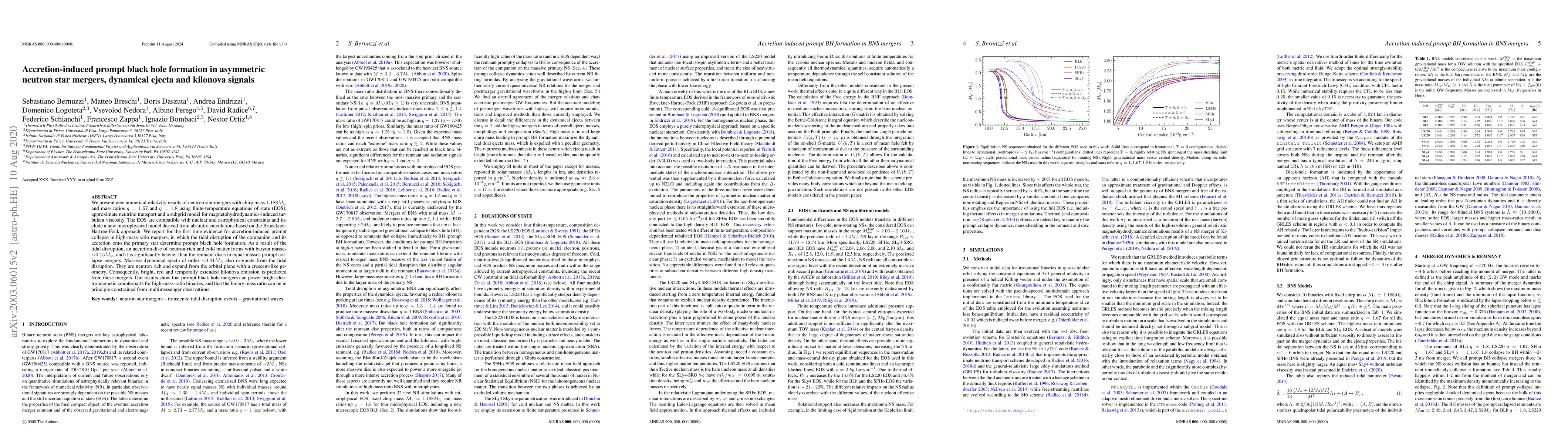 This paper presents numerical relativity results on neutron star mergers, revealing for the first time accretion-induced prompt black hole formation in asymmetric mergers due to tidal disruption. The study predicts significant dynamical ejecta and bright, red kilonova signals, suggesting that high-mass-ratio binaries can power bright electromagnetic counterparts.