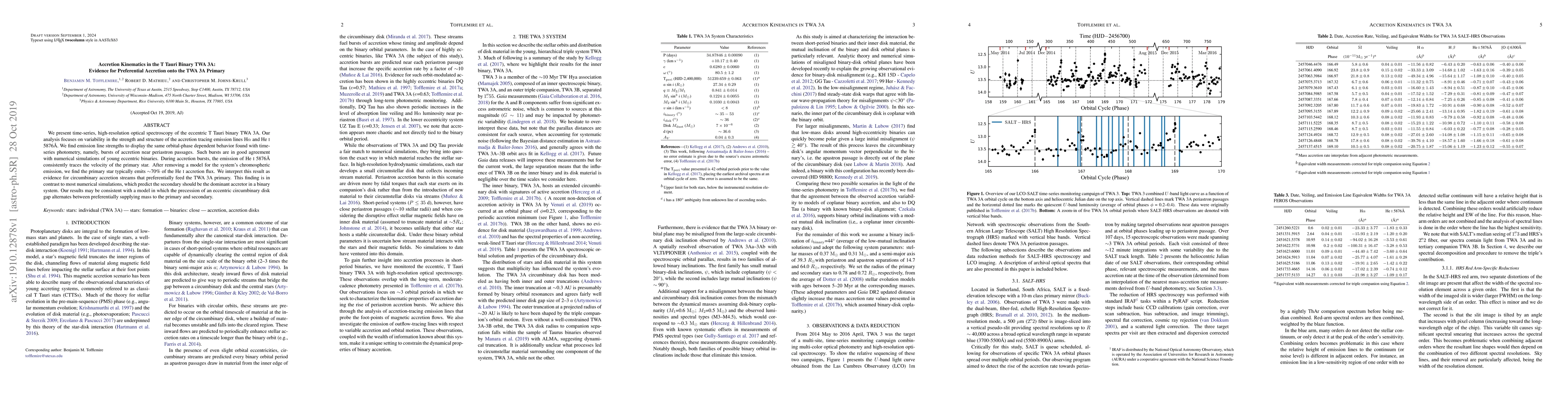 We present time-series, high-resolution optical spectroscopy of the eccentric T Tauri binary TWA 3A. Our analysis focuses on variability in the strength and structure of the accretion tracing emission lines H alpha and He I 5876A. We find emission line strengths to display the same orbital-phase dependent behavior found with time-series photometry, namely, bursts of accretion near periastron passages. Such bursts are in good agreement with numerical simulations of young eccentric binaries. During accretion bursts, the emission of He I 5876A consistently traces the velocity of the primary star. After removing a model for the system's chromospheric emission, we find the primary star typically emits ~70% of the He I accretion flux. We interpret this result as evidence for circumbinary accretion streams that preferentially feed the TWA 3A primary. This finding is in contrast to most numerical simulations, which predict the secondary should be the dominant accretor in a binary system. Our results may be consistent with a model in which the precession of an eccentric circumbinary disk gap alternates between preferentially supplying mass to the primary and secondary.