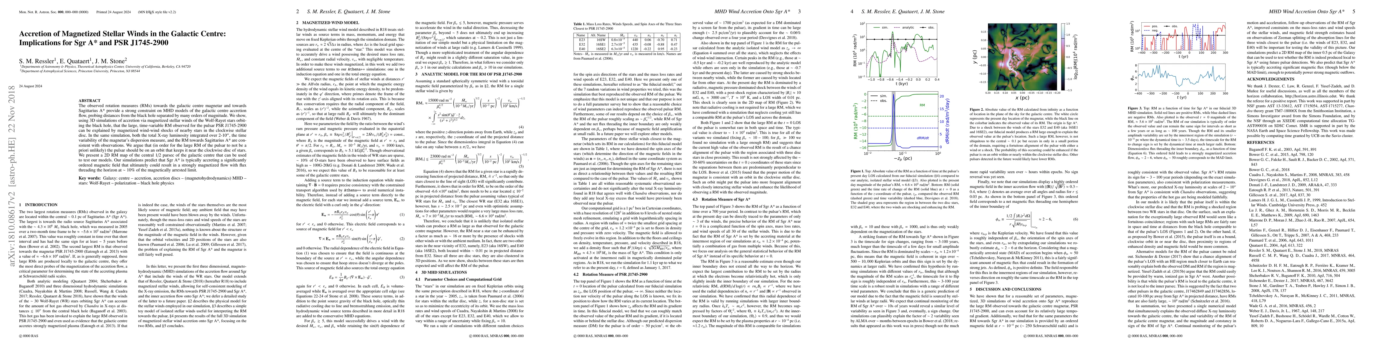 The observed rotation measures (RMs) towards the galactic centre magnetar and towards Sagittarius A* provide a strong constraint on MHD models of the galactic centre accretion flow, probing distances from the black hole separated by many orders of magnitude. We show, using 3D simulations of accretion via magnetized stellar winds of the Wolf-Rayet stars orbiting the black hole, that the large, time-variable RM observed for the pulsar PSR J1745-2900 can be explained by magnetized wind-wind shocks of nearby stars in the clockwise stellar disc. In the same simulation, both the total X-ray luminosity integrated over 2-10$''$, the time variability of the magnetar's dispersion measure, and the RM towards Sagittarius A* are consistent with observations. We argue that (in order for the large RM of the pulsar to not be a priori unlikely) the pulsar should be on an orbit that keeps it near the clockwise disc of stars. We present a 2D RM map of the central 1/2 parsec of the galactic centre that can be used to test our models. Our simulations predict that Sgr A* is typically accreting a significantly ordered magnetic field that ultimately could result in a strongly magnetized flow with flux threading the horizon at $\sim$ 10$\%$ of the magnetically arrested limit.