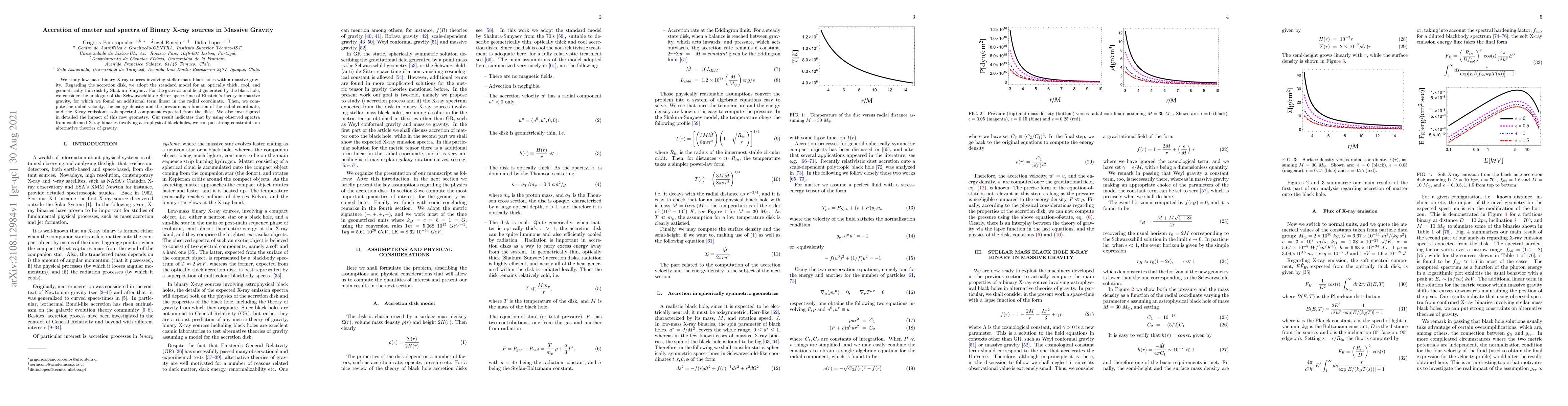 We study low-mass binary X-ray sources involving stellar mass black holes within massive gravity. Regarding the accretion disk, we adopt the standard model for an optically thick, cool, and geometrically thin disk by Shakura-Sunyaev. For the gravitational field generated by the black hole, we consider the analogue of the Schwarzschild-de Sitter space-time of Einstein's theory in massive gravity, for which we found an additional term linear in the radial coordinate. Then, we compute the radial velocity, the energy density and the pressure as a function of the radial coordinate, and the X-ray emission's soft spectral component expected from the disk. We also investigated in detailed the impact of this new geometry. Our result indicates that by using observed spectra from confirmed X-ray binaries involving astrophysical black holes, we can put strong constraints on alternative theories of gravity.