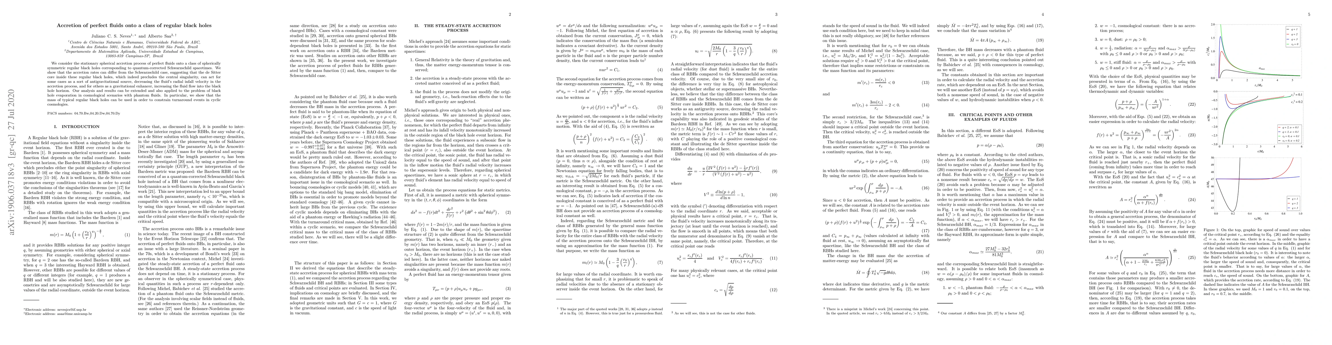 This paper investigates the accretion of perfect fluids onto regular black holes, finding that the presence of a de Sitter core can either decrease or increase the accretion rate compared to Schwarzschild black holes. The study also extends the findings to black hole evaporation and cyclic cosmology.