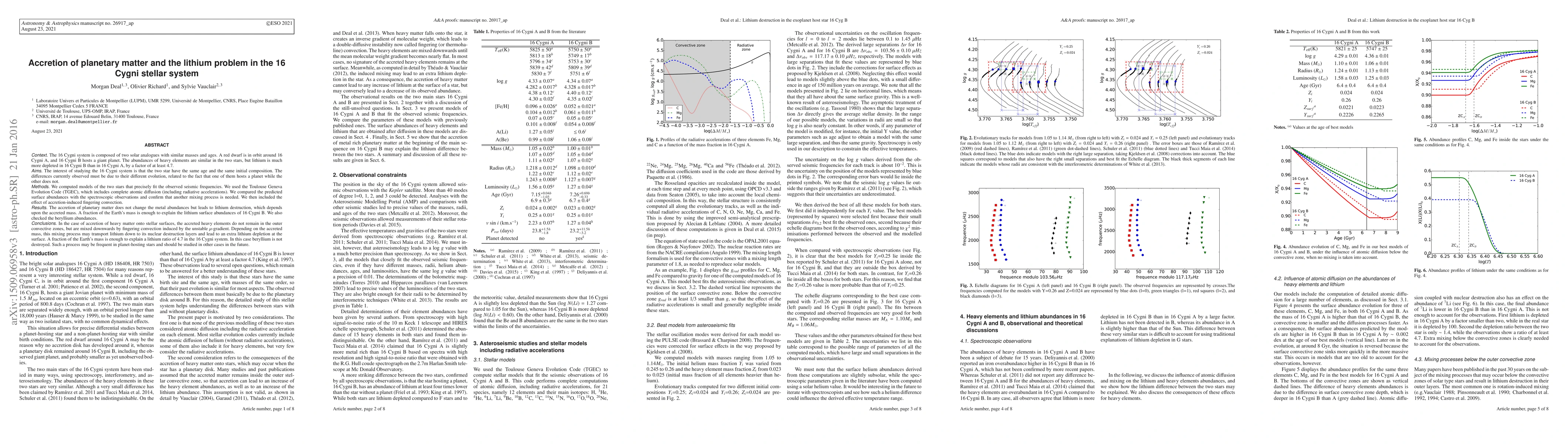 The 16 Cyg system, composed of two solar-like stars with similar ages and compositions, shows a significant lithium depletion in the star hosting a giant planet. The study suggests that accretion of planetary matter induces fingering convection, which destroys lithium and could explain the observed lithium difference, without affecting beryllium abundances.