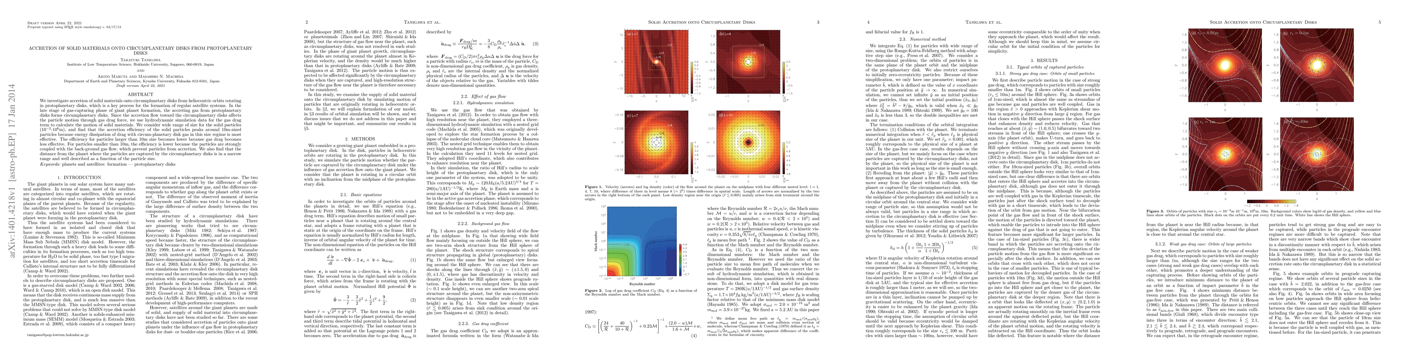 This study uses hydrodynamic simulations to explore the accretion of solid materials onto circumplanetary disks from protoplanetary disks, a crucial process for satellite system formation. The research finds that the most efficient accretion occurs for 10m-sized particles due to optimal energy dissipation via gas drag, while larger and smaller particles experience reduced efficiency due to less effective drag or strong coupling with background gas, respectively.