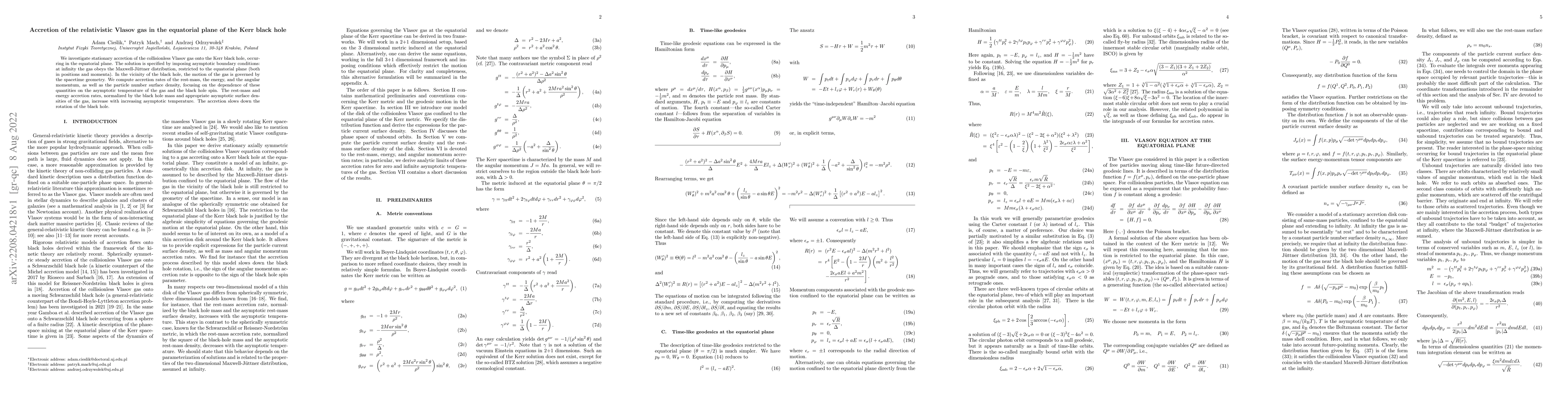 We investigate stationary accretion of the collisionless Vlasov gas onto the Kerr black hole, occurring in the equatorial plane. The solution is specified by imposing asymptotic boundary conditions: at infinity the gas obeys the Maxwell-J\"{u}ttner distribution, restricted to the equatorial plane (both in positions and momenta). In the vicinity of the black hole, the motion of the gas is governed by the spacetime geometry. We compute accretion rates of the rest-mass, the energy, and the angular momentum, as well as the particle number surface density, focusing on the dependence of these quantities on the asymptotic temperature of the gas and the black hole spin. The rest-mass and energy accretion rates, normalized by the black hole mass and appropriate asymptotic surface densities of the gas, increase with increasing asymptotic temperature. The accretion slows down the rotation of the black hole.