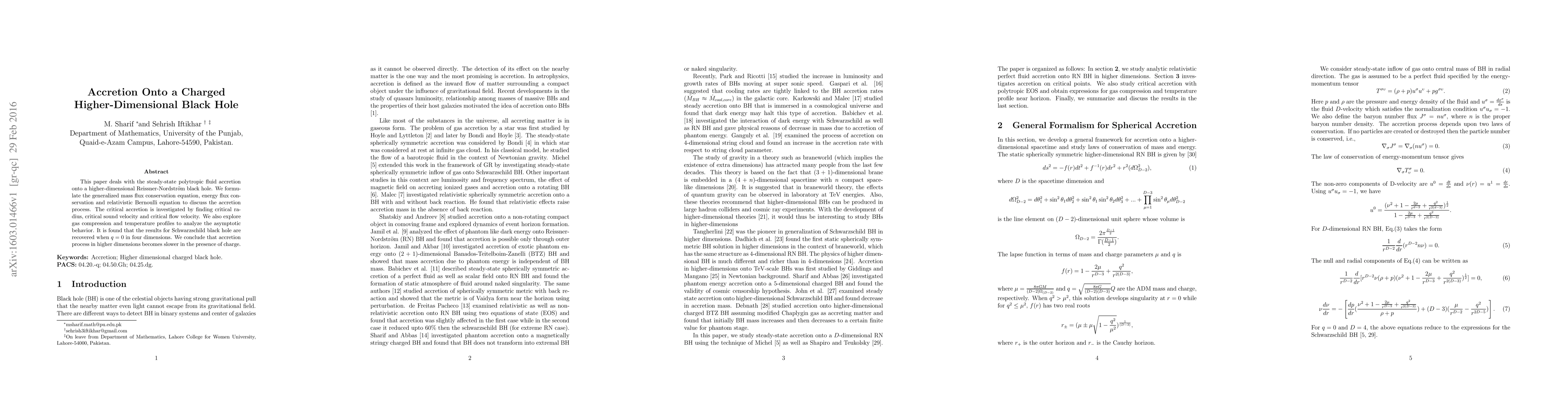 This paper investigates steady-state polytropic fluid accretion onto a charged higher-dimensional black hole, deriving mass flux, energy flux, and relativistic Bernoulli equations. It finds that accretion slows in higher dimensions due to charge, with results for Schwarzschild black holes recovered when charge is absent.