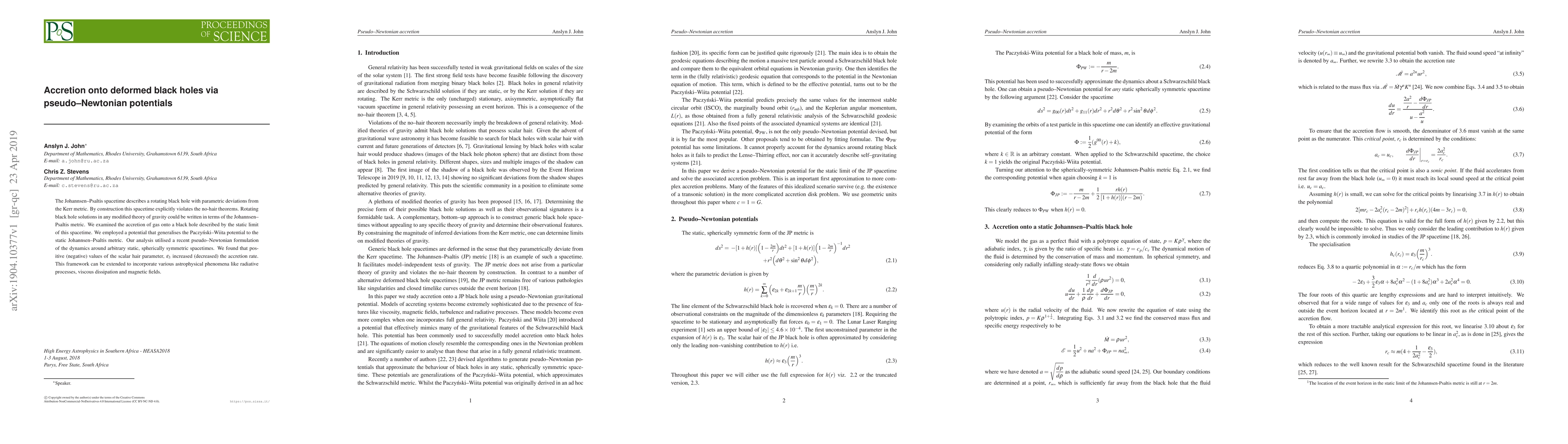 The Johannsen-Psaltis spacetime describes a rotating black hole with parametric deviations from the Kerr metric. By construction this spacetime explicitly violates the no-hair theorems. Rotating black hole solutions in any modified theory of gravity could be written in terms of the Johannsen-Psaltis metric. We examined the accretion of gas onto a black hole described by the static limit of this spacetime. We employed a potential that generalises the Paczynski-Wiita potential to the static Johannsen-Psaltis metric. Our analysis utilised a recent pseudo-Newtonian formulation of the dynamics around arbitrary static, spherically symmetric spacetimes. We found that positive (negative) values of the scalar hair parameter, $\epsilon_{3}$ increased (decreased) the accretion rate. This framework can be extended to incorporate various astrophysical phenomena like radiative processes, viscous dissipation and magnetic fields.