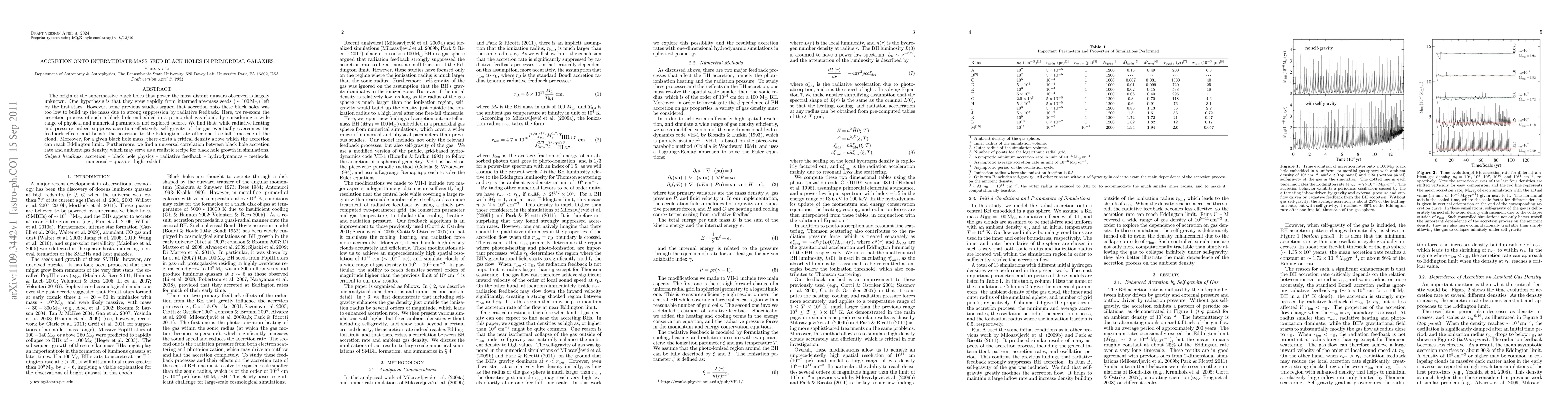 This paper investigates the accretion process onto intermediate-mass black hole seeds in primordial galaxies, finding that despite radiative feedback suppression, self-gravity of the gas can eventually boost accretion to the Eddington rate, suggesting a viable pathway for the growth of supermassive black holes. A critical gas density is identified above which accretion can reach the Eddington limit, and a universal correlation between black hole accretion rate and ambient gas density is proposed.