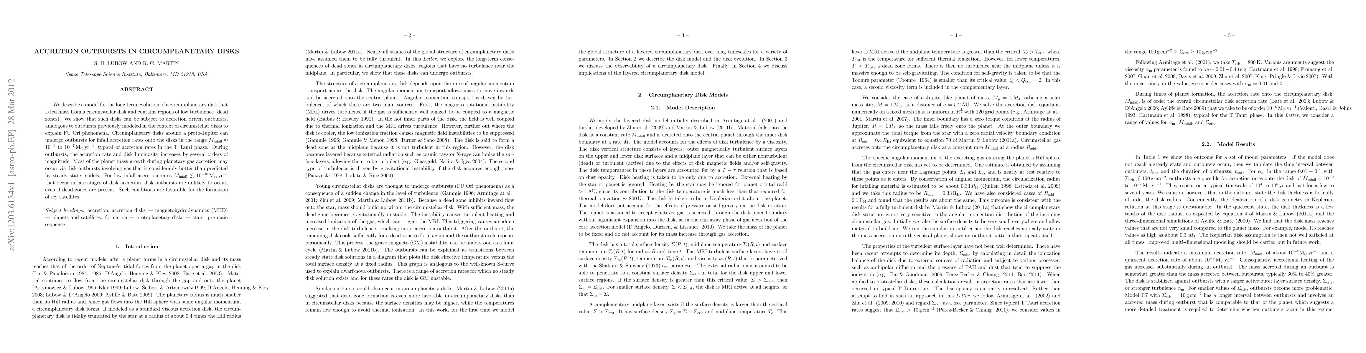 This paper models the long-term evolution of circumplanetary disks, showing they can experience accretion outbursts similar to FU Ori phenomena in circumstellar disks. These outbursts significantly increase accretion rates and disk luminosity, suggesting most planet mass growth occurs during these events.