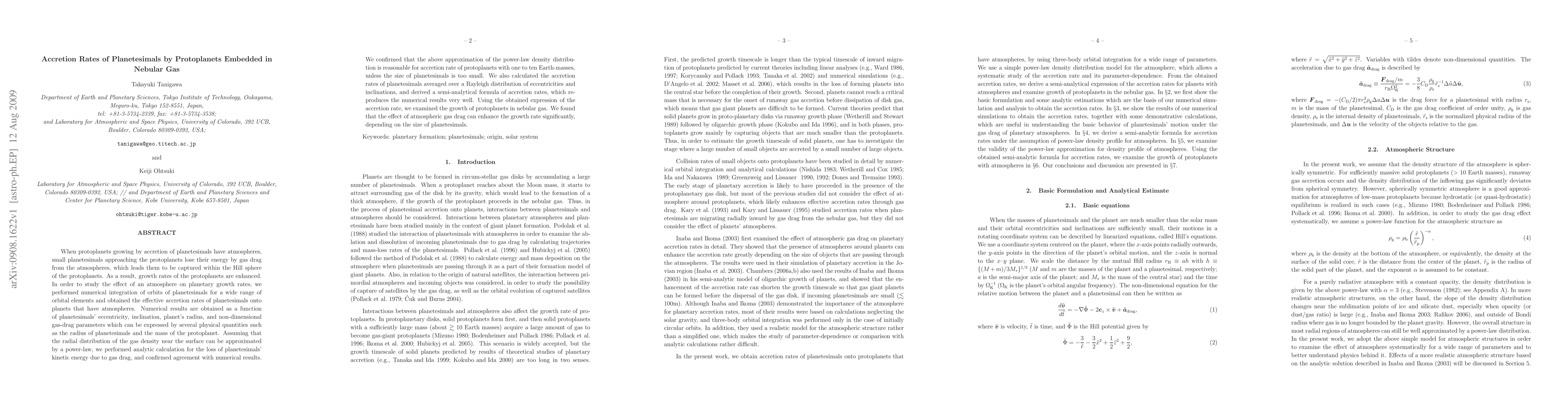 This paper investigates how protoplanets' atmospheres affect the accretion rates of planetesimals, finding that gas drag enhances growth rates significantly. The study combines numerical simulations and analytical calculations to derive a semi-analytical formula for accretion rates, showing that atmospheric gas drag is crucial for protoplanet growth, especially for smaller planetesimals.