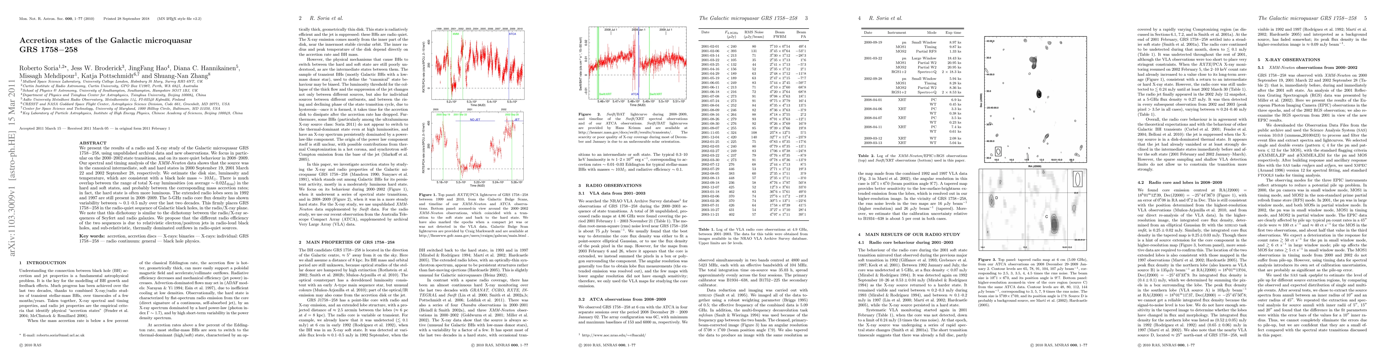 This study analyzes the accretion states of the Galactic microquasar GRS 1758-258, identifying transitions between intermediate, soft, and hard X-ray states, and noting consistent black hole mass estimates. The source exhibits radio variability and is classified as radio-quiet, suggesting different jet dynamics compared to radio-loud black holes.
