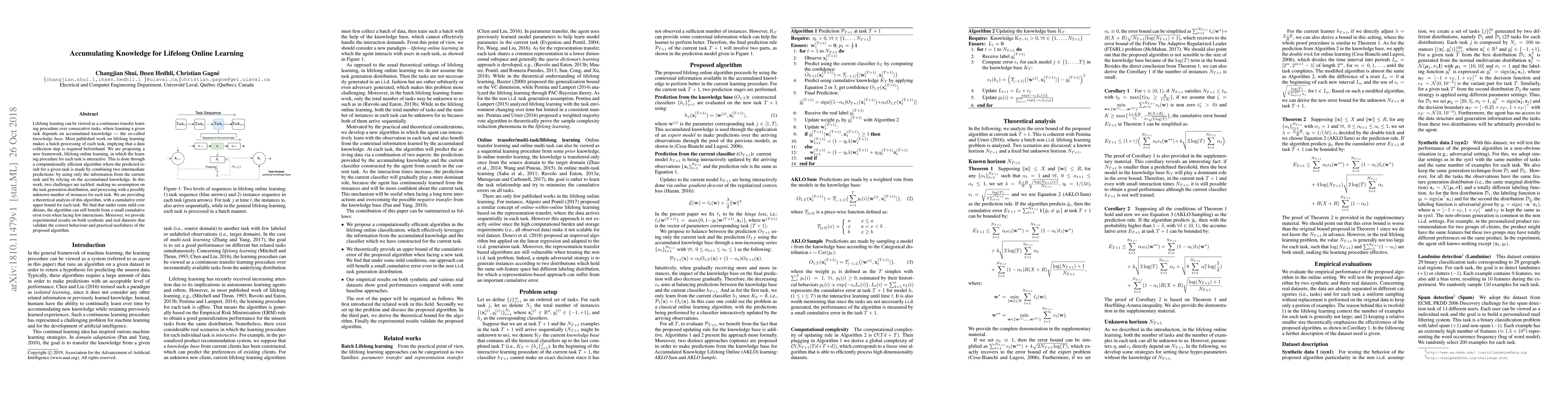 This research introduces a novel lifelong online learning framework that enables continuous, interactive learning without requiring batch data collection. The proposed algorithm combines current task predictions with accumulated knowledge, addressing challenges like unknown task distributions and variable task instance counts, while providing theoretical and empirical validation.