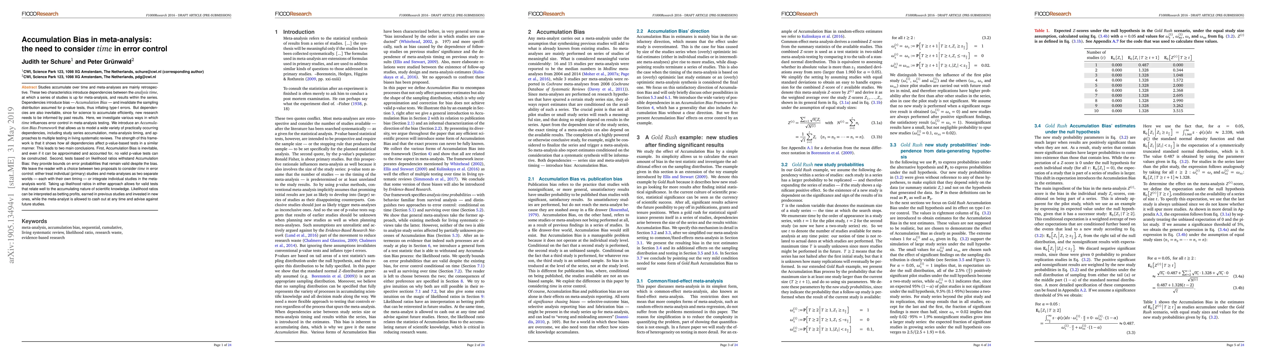 This paper discusses the Accumulation Bias in meta-analyses, which arises due to the dependencies between analysis time and study results over time. It proposes a framework to model these dependencies and concludes that while Accumulation Bias is inevitable, likelihood ratio tests provide valid error control, offering a practical approach to managing the bias in scientific research.