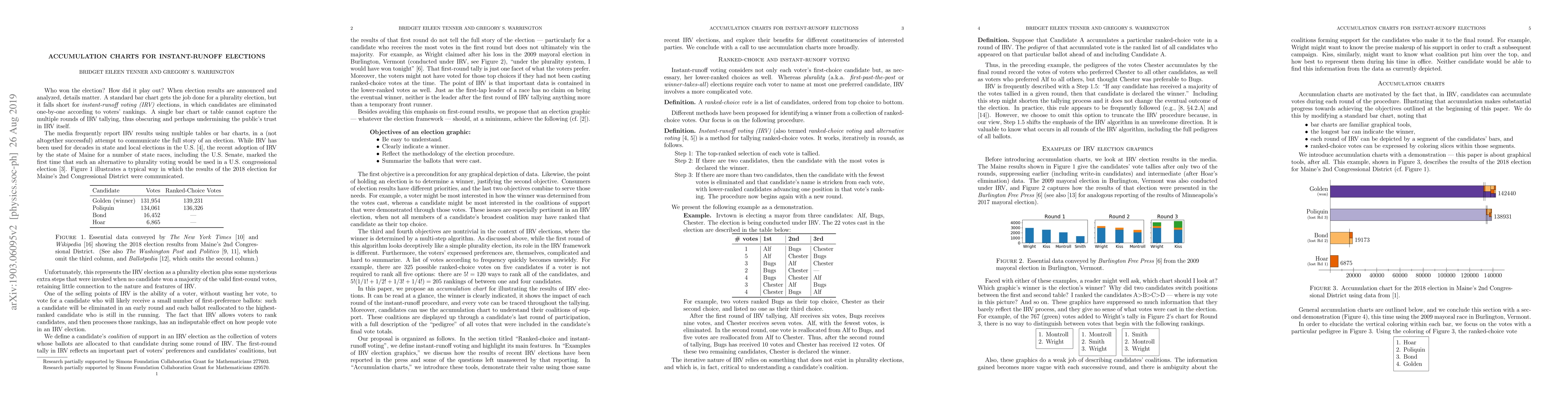 We propose a new graphical format for instant-runoff voting election results. We call this proposal an "accumulation chart." This model, a modification of standard bar charts, is easy to understand, clearly indicates the winner, depicts the instant-runoff algorithm, and summarizes the votes cast. Moreover, it includes the pedigree of each accumulated vote and gives a clear depiction of candidates' coalitions.