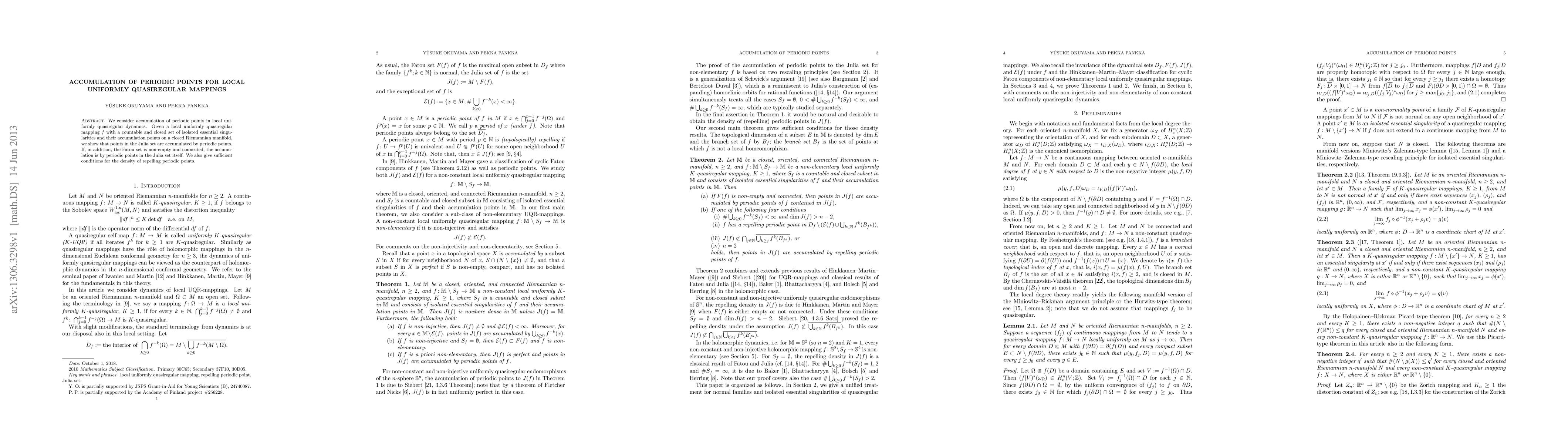 This paper investigates the accumulation of periodic points in local uniformly quasiregular dynamics, proving that points in the Julia set are accumulated by periodic points, especially when the Fatou set is non-empty and connected. It also provides conditions for the density of repelling periodic points.