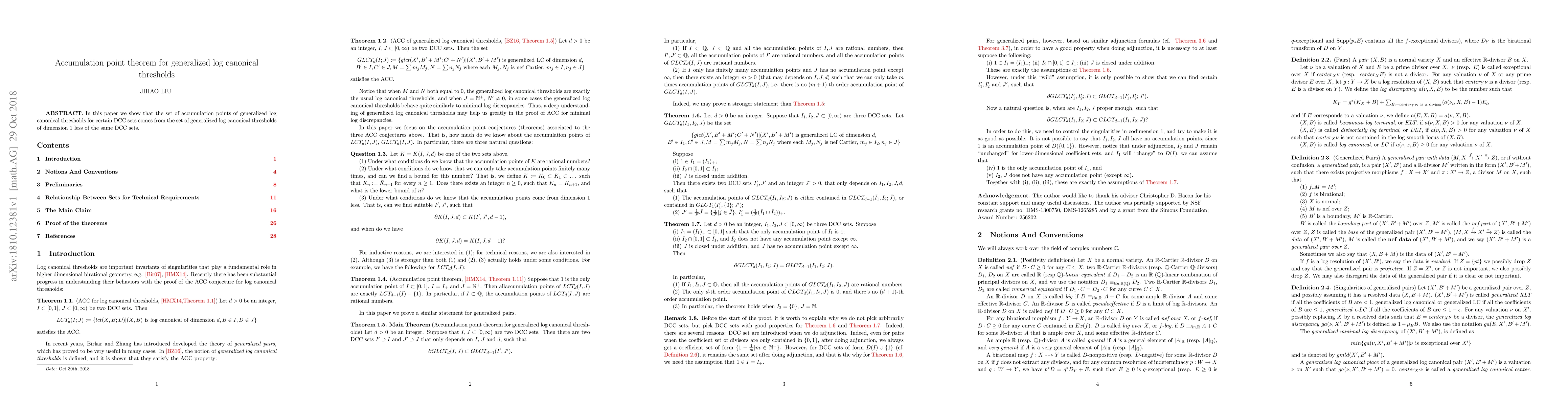 This paper demonstrates that the accumulation points of generalized log canonical thresholds for specific DCC sets derive from the generalized log canonical thresholds of one dimension lower of the same DCC sets. The result provides insight into the behavior of these thresholds as dimensions decrease.