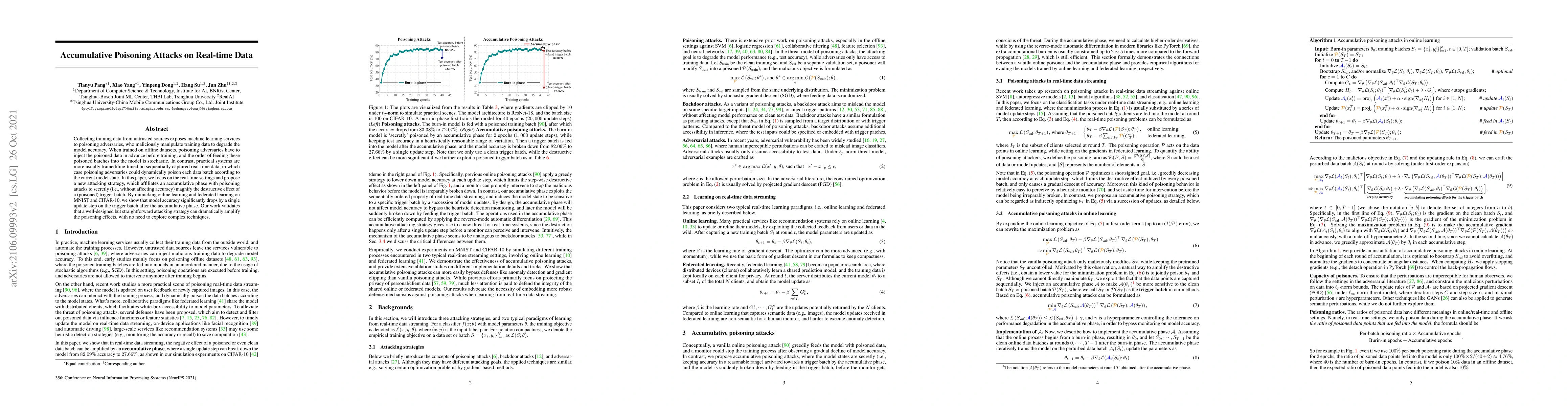 This paper introduces a novel poisoning attack strategy for real-time data training, where adversaries dynamically poison each data batch based on the current model state. The proposed accumulative poisoning method amplifies the destructive effect of a trigger batch without affecting accuracy, significantly degrading model accuracy after a single update step.