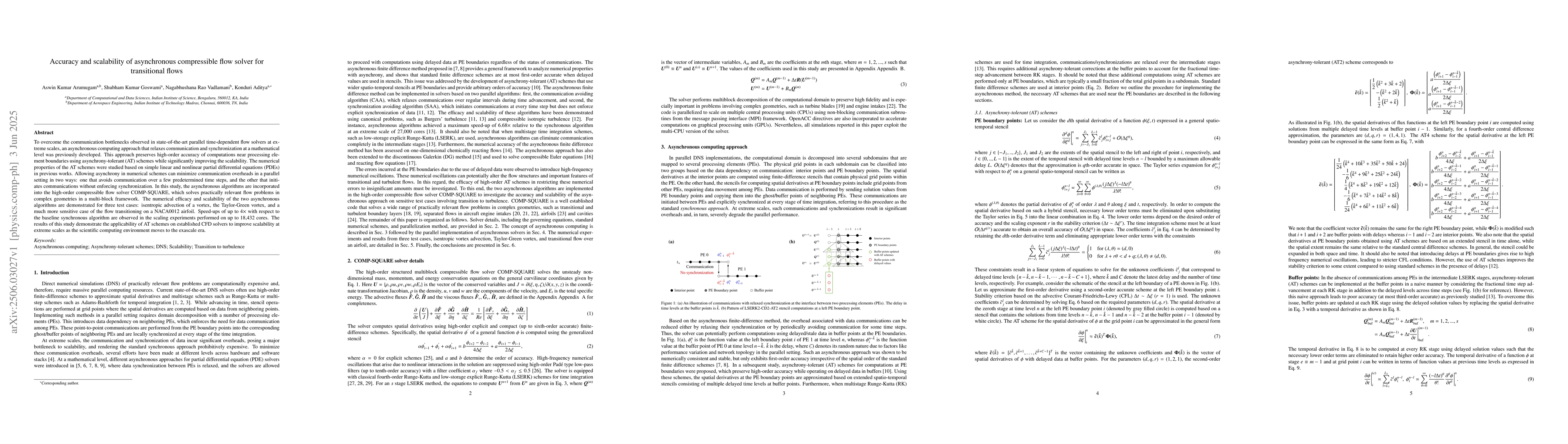 The research incorporates asynchronous algorithms into the high-order compressible flow solver COMP-SQUARE, evaluating their efficacy and scalability through three test cases: isentropic advection of a vortex, the Taylor-Green vortex, and flow transition on a NACA0012 airfoil.