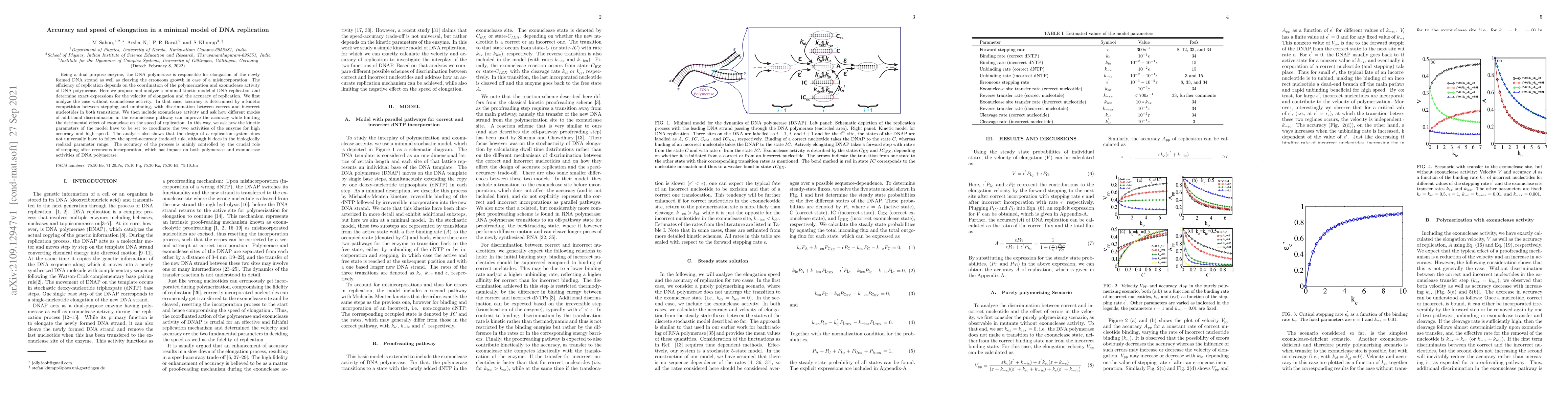 This paper proposes a minimal kinetic model to analyze the balance between the elongation and exonuclease activities of DNA polymerase, determining expressions for replication speed and accuracy. The study finds that while high accuracy and speed often conflict, the model suggests ways to improve accuracy without significantly sacrificing speed, challenging the universal speed-accuracy trade-off.