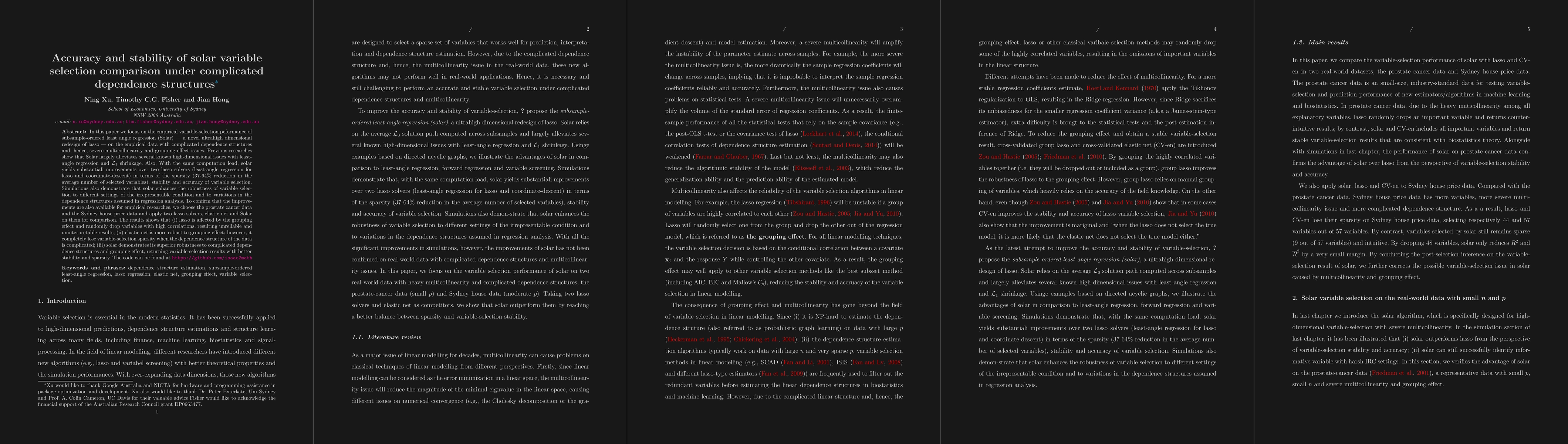 In this paper we focus on the empirical variable-selection peformance of subsample-ordered least angle regression (Solar) -- a novel ultrahigh dimensional redesign of lasso -- on the empirical data with complicated dependence structures and, hence, severe multicollinearity and grouping effect issues. Previous researches show that Solar largely alleviates several known high-dimensional issues with least-angle regression and $\mathcal{L}_1$ shrinkage. Also, With the same computation load, solar yields substantiali mprovements over two lasso solvers (least-angle regression for lasso and coordinate-descent) in terms of the sparsity (37-64\% reduction in the average number of selected variables), stability and accuracy of variable selection. Simulations also demonstrate that solar enhances the robustness of variable selection to different settings of the irrepresentable condition and to variations in the dependence structures assumed in regression analysis. To confirm that the improvements are also available for empirical researches, we choose the prostate cancer data and the Sydney house price data and apply two lasso solvers, elastic net and Solar on them for comparison. The results shows that (i) lasso is affected by the grouping effect and randomly drop variables with high correlations, resulting unreliable and uninterpretable results; (ii) elastic net is more robust to grouping effect; however, it completely lose variable-selection sparsity when the dependence structure of the data is complicated; (iii) solar demonstrates its superior robustness to complicated dependence structures and grouping effect, returning variable-selection results with better stability and sparsity. The code can be found at https://github.com/isaac2math/solar_application