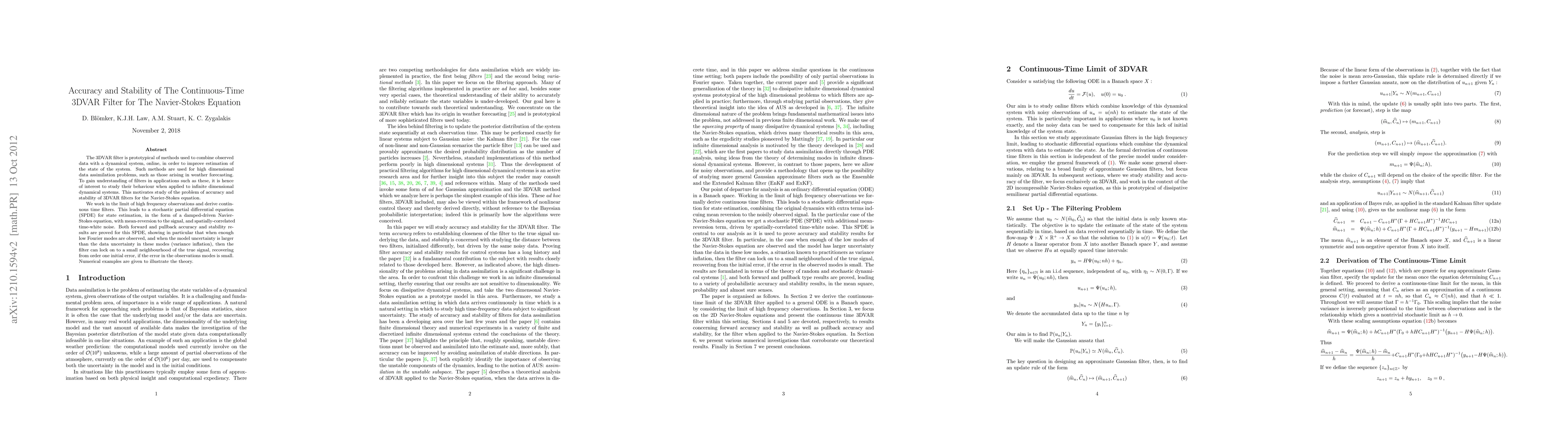 Researchers studied the accuracy and stability of a 3DVAR filter used in weather forecasting by applying it to the Navier-Stokes equation, showing that it can accurately estimate system states with high-frequency observations.