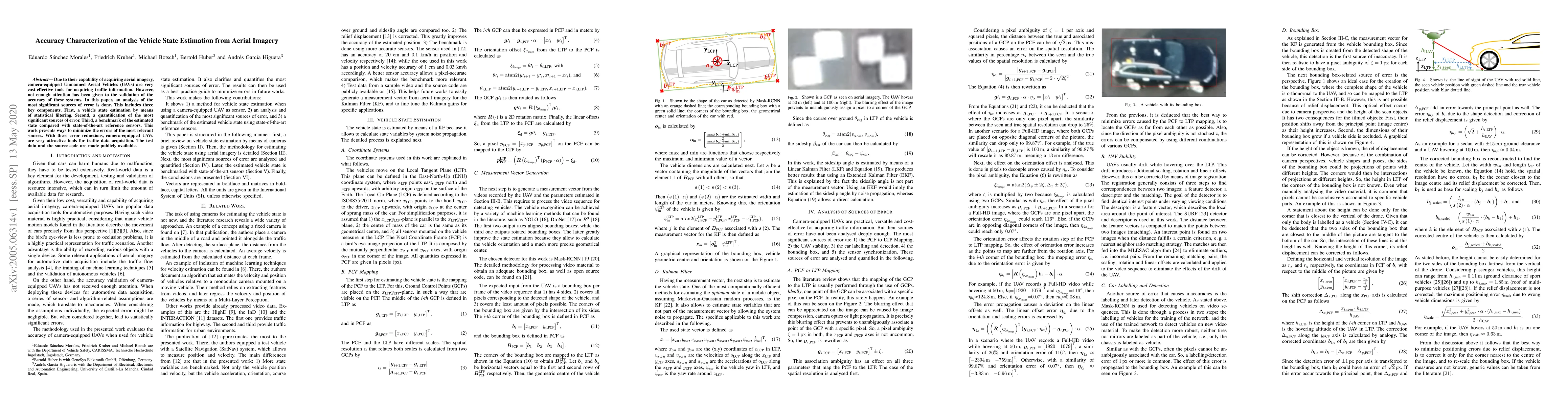 Due to their capability of acquiring aerial imagery, camera-equipped Unmanned Aerial Vehicles (UAVs) are very cost-effective tools for acquiring traffic information. However, not enough attention has been given to the validation of the accuracy of these systems. In this paper, an analysis of the most significant sources of error is done. This includes three key components. First, a vehicle state estimation by means of statistical filtering. Second, a quantification of the most significant sources of error. Third, a benchmark of the estimated state compared with state-of-the-art reference sensors. This work presents ways to minimize the errors of the most relevant sources. With these error reductions, camera-equipped UAVs are very attractive tools for traffic data acquisition. The test data and the source code are made publicly available.