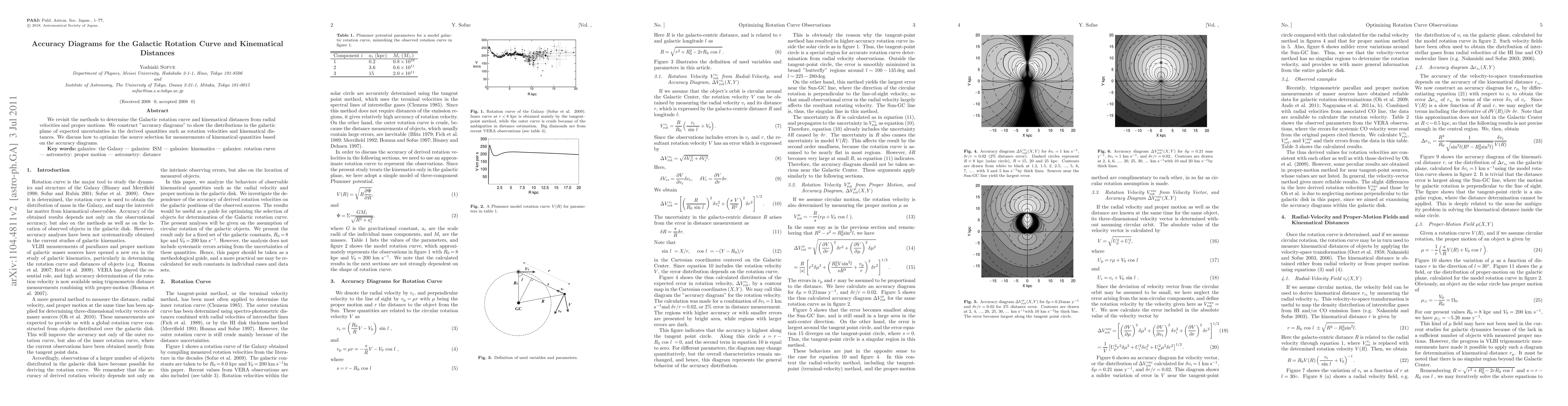 This paper revisits methods for determining the Galactic rotation curve and kinematical distances using radial velocities and proper motions, introducing "accuracy diagrams" to visualize uncertainties in derived quantities and optimizing source selection for measurements.