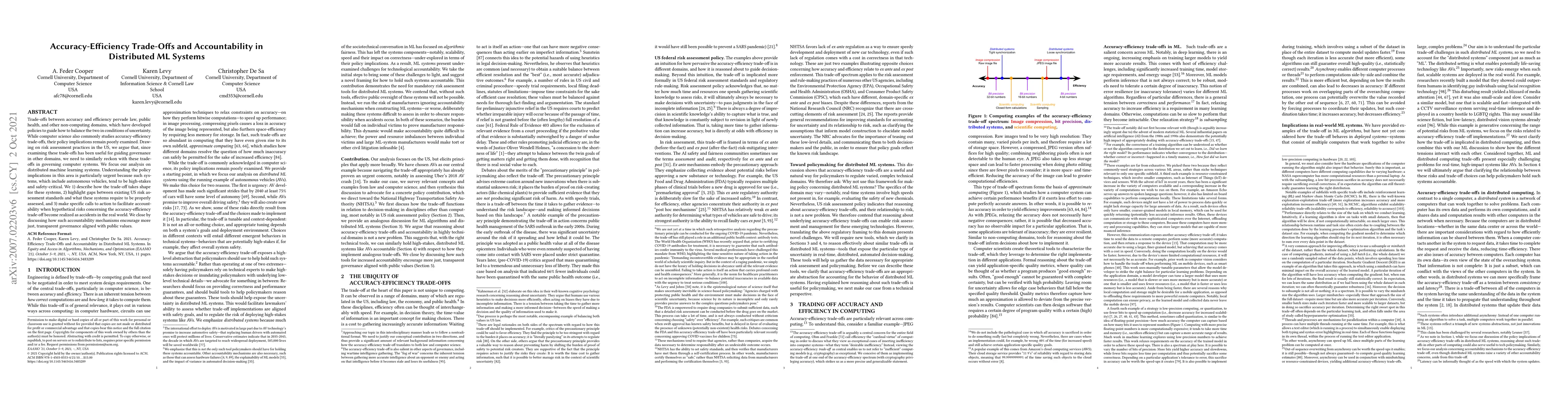 This paper examines the accuracy-efficiency trade-offs in distributed machine learning systems and calls for improved accountability mechanisms. It highlights gaps in current US risk assessment standards and proposes actions to ensure proper assessment and governance, emphasizing the need for just and transparent oversight in high-stakes, safety-critical scenarios.