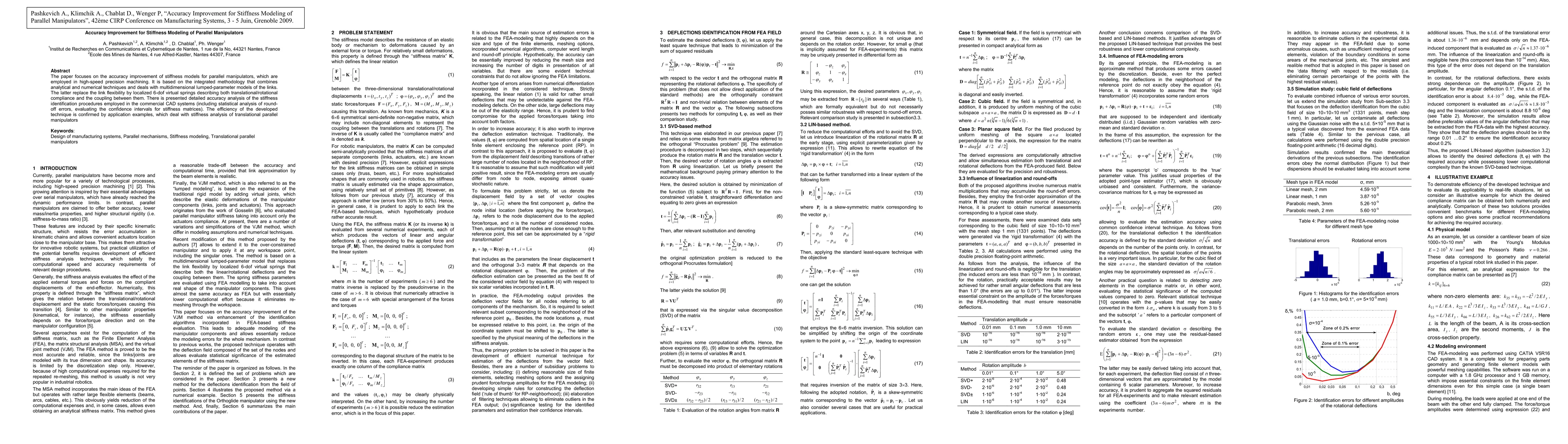 The paper focuses on the accuracy improvement of stiffness models for parallel manipulators, which are employed in high-speed precision machining. It is based on the integrated methodology that combines analytical and numerical techniques and deals with multidimensional lumped-parameter models of the links. The latter replace the link flexibility by localized 6-dof virtual springs describing both translational/rotational compliance and the coupling between them. There is presented detailed accuracy analysis of the stiffness identification procedures employed in the commercial CAD systems (including statistical analysis of round-off errors, evaluating the confidence intervals for stiffness matrices). The efficiency of the developed technique is confirmed by application examples, which deal with stiffness analysis of translational parallel manipulators.