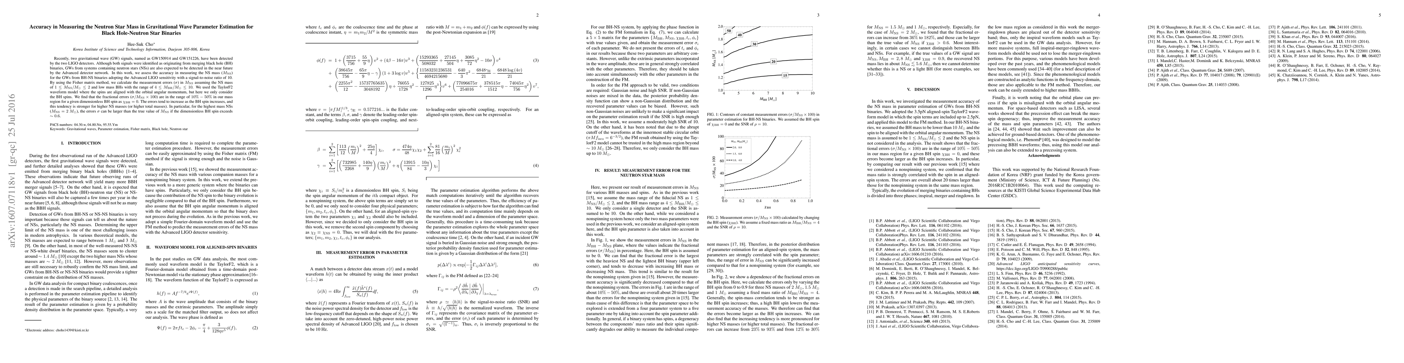 Researchers assessed the accuracy of measuring neutron star mass in gravitational wave signals using the Fisher matrix method, finding that errors can range from 10% to 50% depending on black hole spin and neutron star mass.
