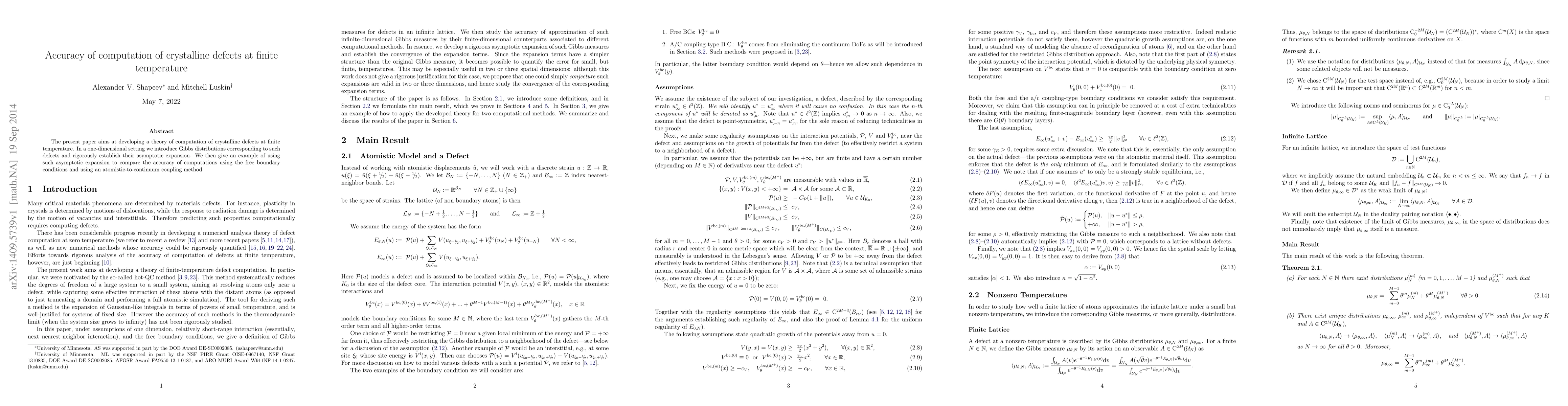 This paper develops a theoretical framework for computing crystalline defects at finite temperatures, introducing Gibbs distributions and establishing their asymptotic expansion. It compares the accuracy of two computational methods: free boundary conditions and atomistic-to-continuum coupling.