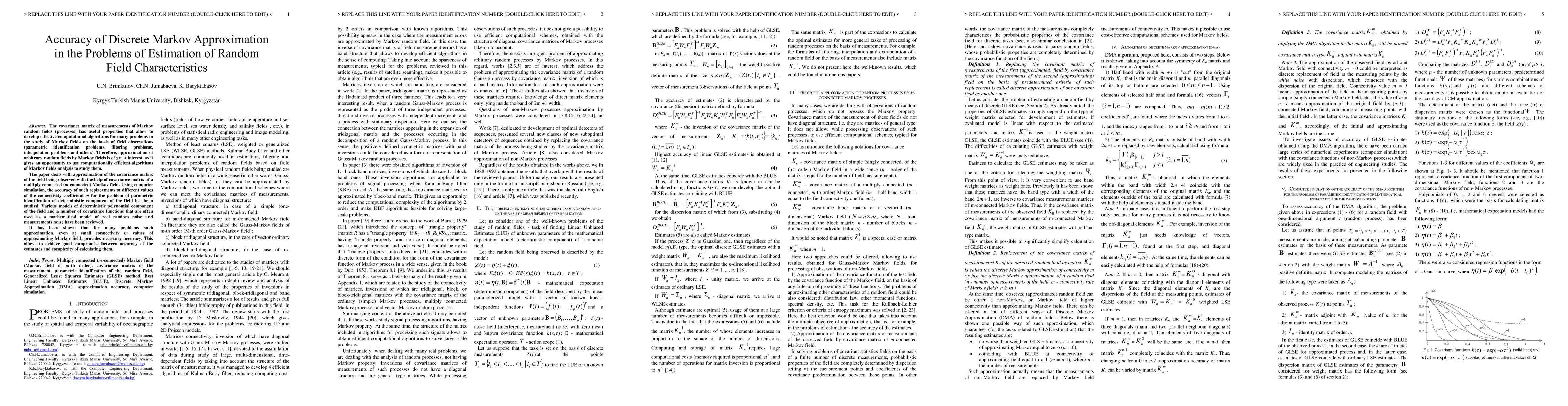 This paper investigates the accuracy of discrete Markov approximation for estimating random field characteristics, demonstrating that even small connectivity values in Markov fields can provide sufficient accuracy for various estimation problems, thus balancing computational efficiency and estimation precision.