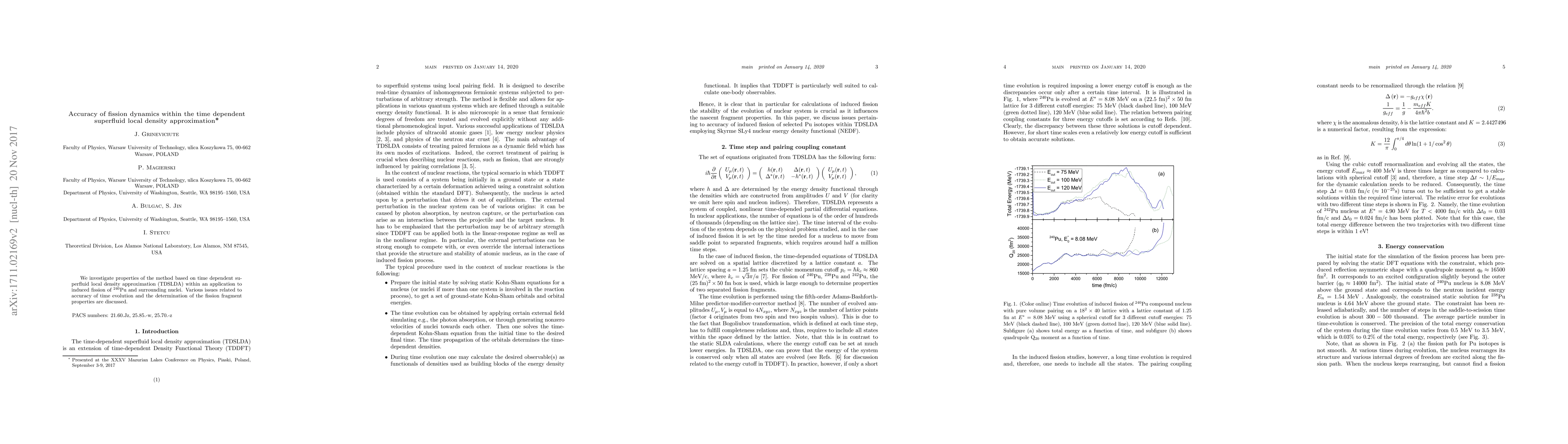 This paper evaluates the accuracy of the time dependent superfluid local density approximation (TDSLDA) for modeling the dynamics of induced fission in 240Pu and nearby nuclei, focusing on the precision of time evolution and fission fragment properties.