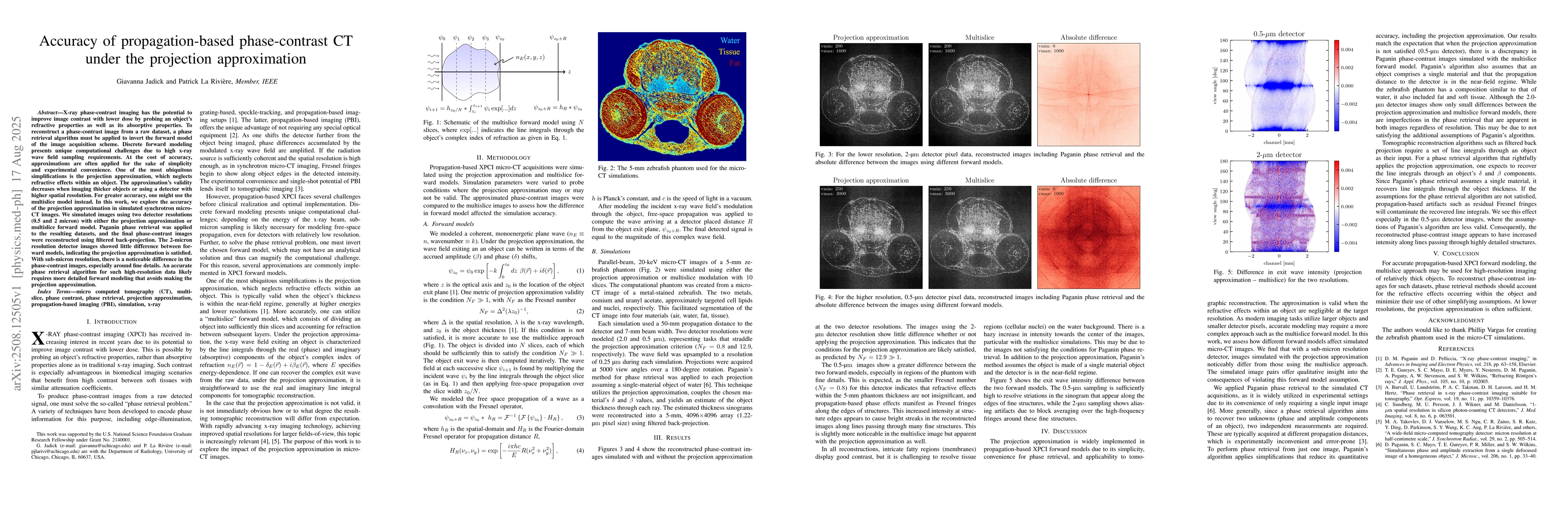 X-ray phase-contrast imaging has the potential to improve image contrast with lower dose by probing an object's refractive properties as well as its absorptive properties. To reconstruct a phase-contrast image from a raw dataset, a phase retrieval algorithm must be applied to invert the forward model of the image acquisition scheme. Discrete forward modeling presents unique computational challenges due to high x-ray wave field sampling requirements. At the cost of accuracy, approximations are often applied for the sake of simplicity and experimental convenience. One of the most ubiquitous simplifications is the projection approximation, which neglects refractive effects within an object. The approximation's validity decreases when imaging thicker objects or using a detector with higher spatial resolution. For greater accuracy, one might use the multislice model instead. In this work, we explore the accuracy of the projection approximation in simulated synchrotron micro-CT images. We simulated images using two detector resolutions (0.5 and 2 micron) with either the projection approximation or multislice forward model. Paganin phase retrieval was applied to the resulting datasets, and the final phase-contrast images were reconstructed using filtered back-projection. The 2-micron resolution detector images showed little difference between forward models, indicating the projection approximation is satisfied. With sub-micron resolution, there is a noticeable difference in the phase-contrast images, especially around fine details. An accurate phase retrieval algorithm for such high-resolution data likely requires more detailed forward modeling that avoids making the projection approximation.