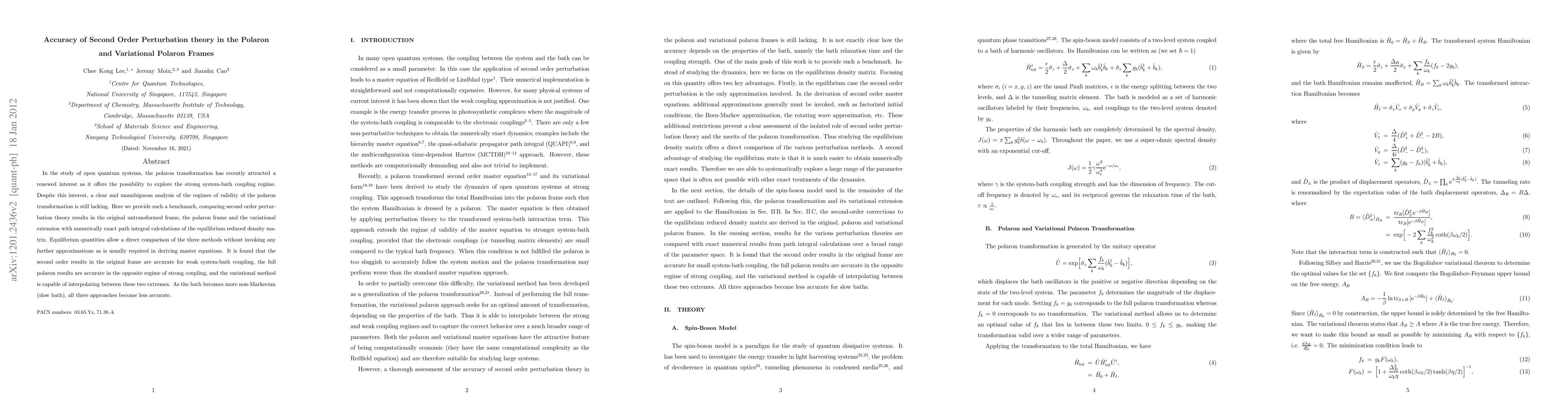 This study benchmarks second order perturbation theory in the polaron and variational polaron frames against exact path integral calculations. It reveals that the original frame's second order theory works for weak system-bath coupling, while the full polaron approach is accurate for strong coupling. The variational method successfully interpolates between these extremes. However, all methods' accuracy decreases with increasing non-Markovianity in the bath.