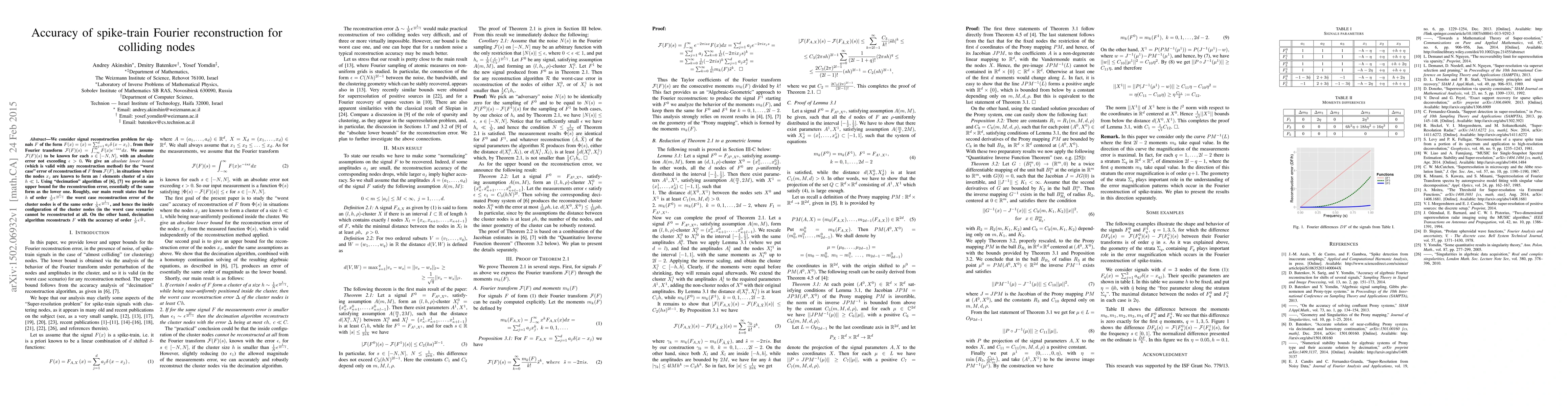 Researchers found that reconstructing spike-train signals with colliding nodes is challenging, requiring high accuracy to recover the signal's inside configuration. Decimation algorithm offers a trade-off between reconstruction accuracy and computational efficiency for certain cluster node configurations.