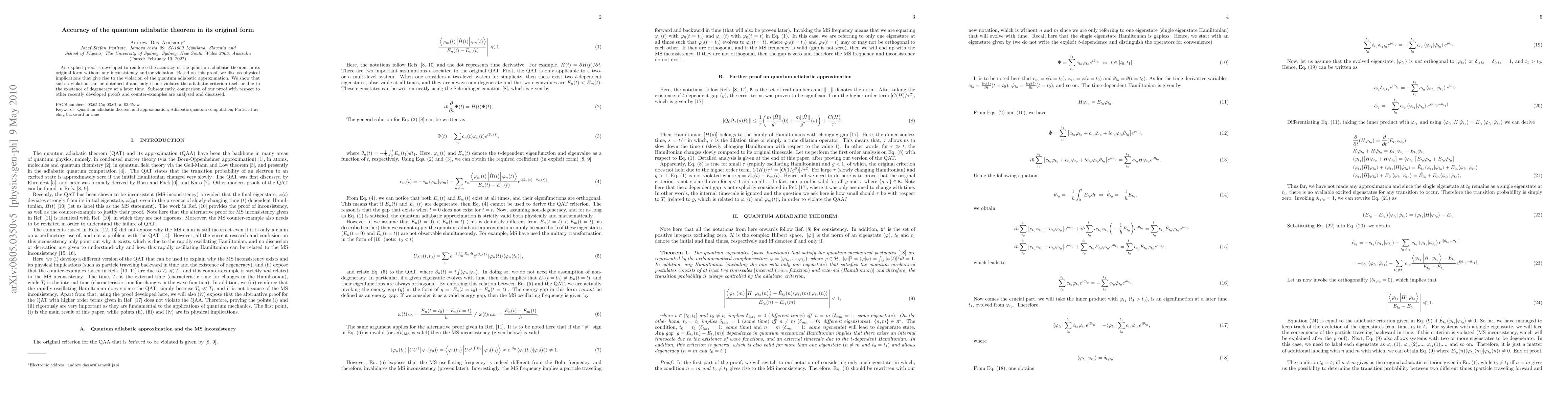 This paper proves the accuracy of the quantum adiabatic theorem in its original form, showing that a violation can only occur if one violates the adiabatic criterion or due to degeneracy at a later time.