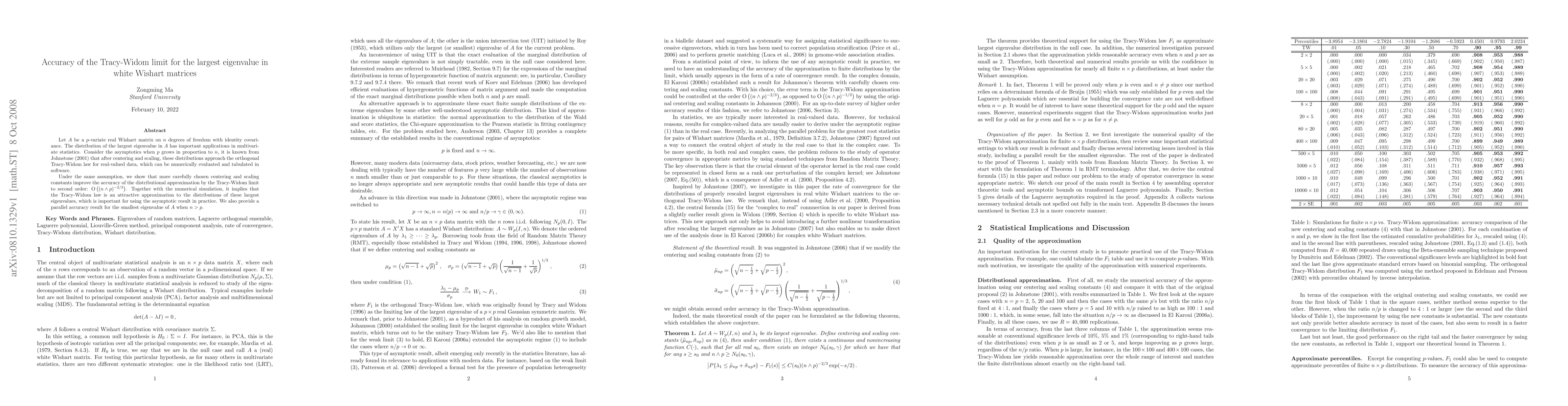 This paper investigates the accuracy of the Tracy-Widom limit for the largest eigenvalue in white Wishart matrices, showing that improved centering and scaling constants enhance the approximation to second order. The findings suggest that the Tracy-Widom law is a highly accurate asymptotic model for practical applications in multivariate statistics.