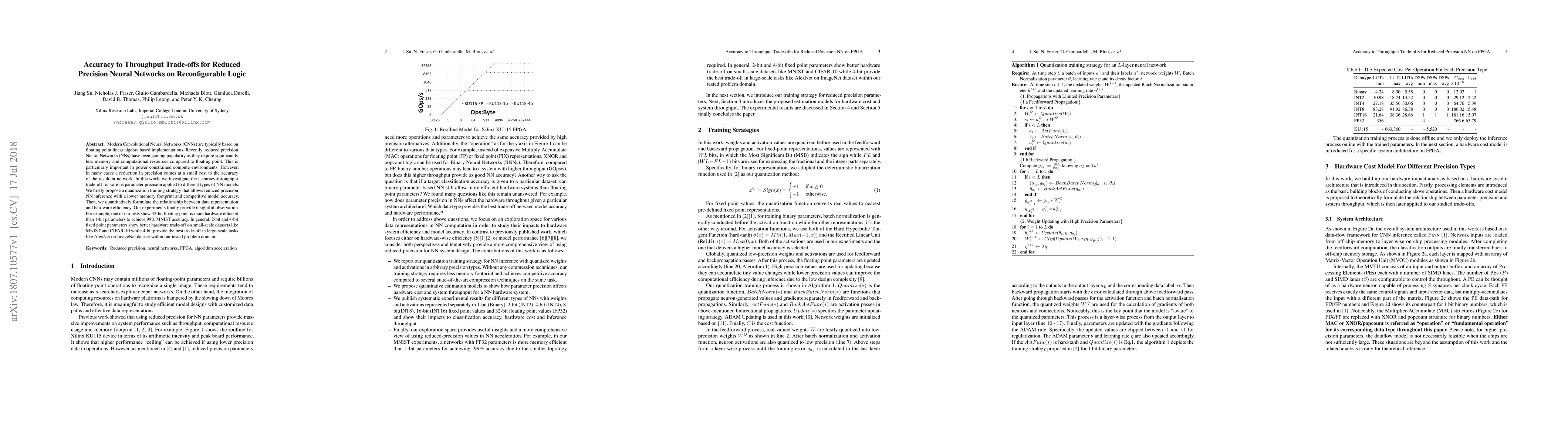 Modern CNN are typically based on floating point linear algebra based implementations. Recently, reduced precision NN have been gaining popularity as they require significantly less memory and computational resources compared to floating point. This is particularly important in power constrained compute environments. However, in many cases a reduction in precision comes at a small cost to the accuracy of the resultant network. In this work, we investigate the accuracy-throughput trade-off for various parameter precision applied to different types of NN models. We firstly propose a quantization training strategy that allows reduced precision NN inference with a lower memory footprint and competitive model accuracy. Then, we quantitatively formulate the relationship between data representation and hardware efficiency. Our experiments finally provide insightful observation. For example, one of our tests show 32-bit floating point is more hardware efficient than 1-bit parameters to achieve 99% MNIST accuracy. In general, 2-bit and 4-bit fixed point parameters show better hardware trade-off on small-scale datasets like MNIST and CIFAR-10 while 4-bit provide the best trade-off in large-scale tasks like AlexNet on ImageNet dataset within our tested problem domain.