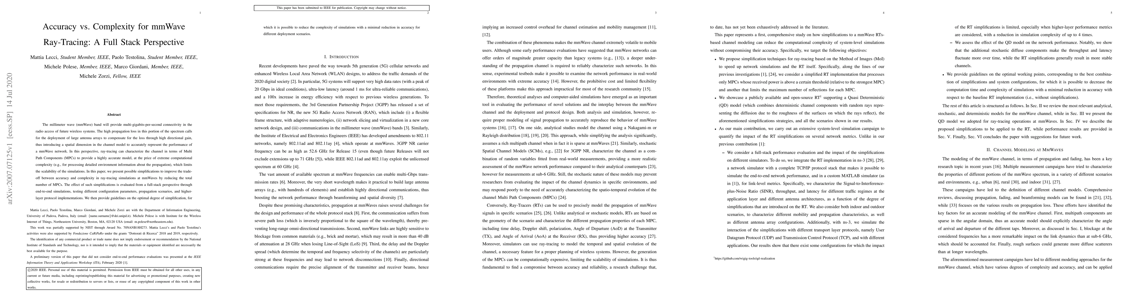 The paper presents two simplification techniques for mmWave ray-tracing simulations to balance accuracy and complexity, focusing on reducing the number of MPCs. It evaluates these techniques from a full-stack perspective through end-to-end simulations, testing various configuration parameters, propagation scenarios, and higher-layer protocol implementations.