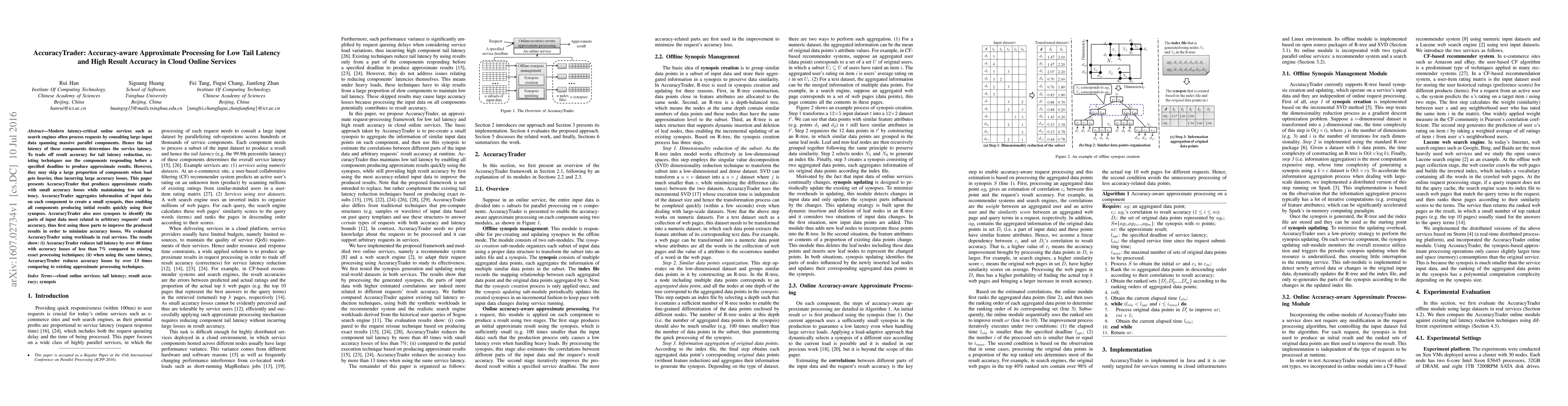 A new approach called AccuracyTrader reduces latency in online services while minimizing accuracy losses, achieving over 40 times faster processing with less than 7% loss of accuracy.
