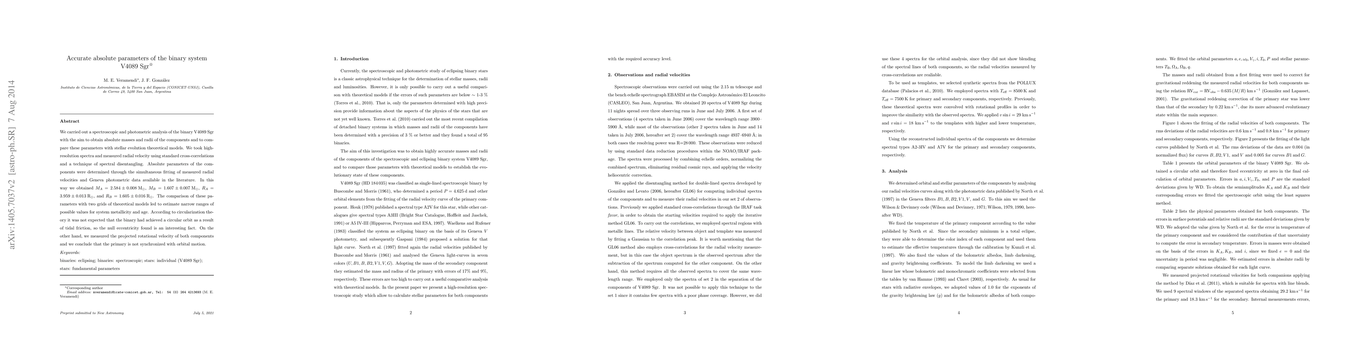 The study accurately determined the absolute masses (Ma=2.584±0.008 Msun, Mb=1.607±0.007 Msun) and radii (Ra=3.959±0.013 Rsun, Rb=1.605±0.016 Rsun) of V4089 Sgr binary system components. The research used high-resolution spectroscopy and photometric data, finding unexpectedly low eccentricity and non-synchronization between the primary star's rotation and orbital motion, with implications for tidal friction theories.