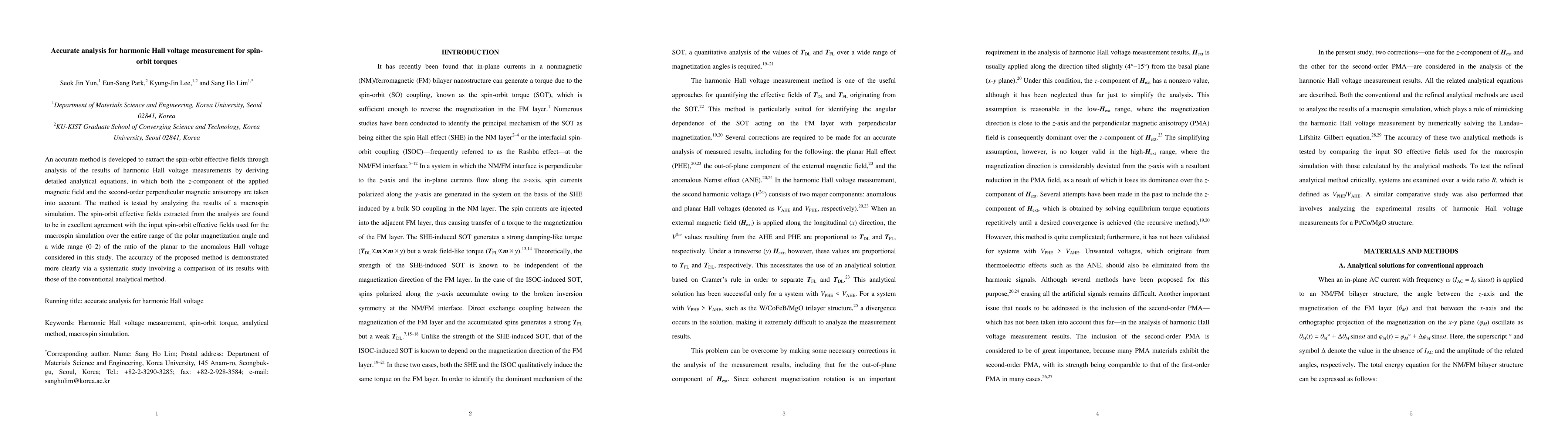 An accurate method is developed to extract the spin-orbit effective fields through analysis of the results of harmonic Hall voltage measurements by deriving detailed analytical equations, in which both the z-component of the applied magnetic field and the second-order perpendicular magnetic anisotropy are taken into account. The method is tested by analyzing the results of a macrospin simulation. The spin-orbit effective fields extracted from the analysis are found to be in excellent agreement with the input spin-orbit effective fields used for the macrospin simulation over the entire range of the polar magnetization angle and a wide range (0-2) of the ratio of the planar to the anomalous Hall voltage considered in this study. The accuracy of the proposed method is demonstrated more clearly via a systematic study involving a comparison of its results with those of the conventional analytical method.