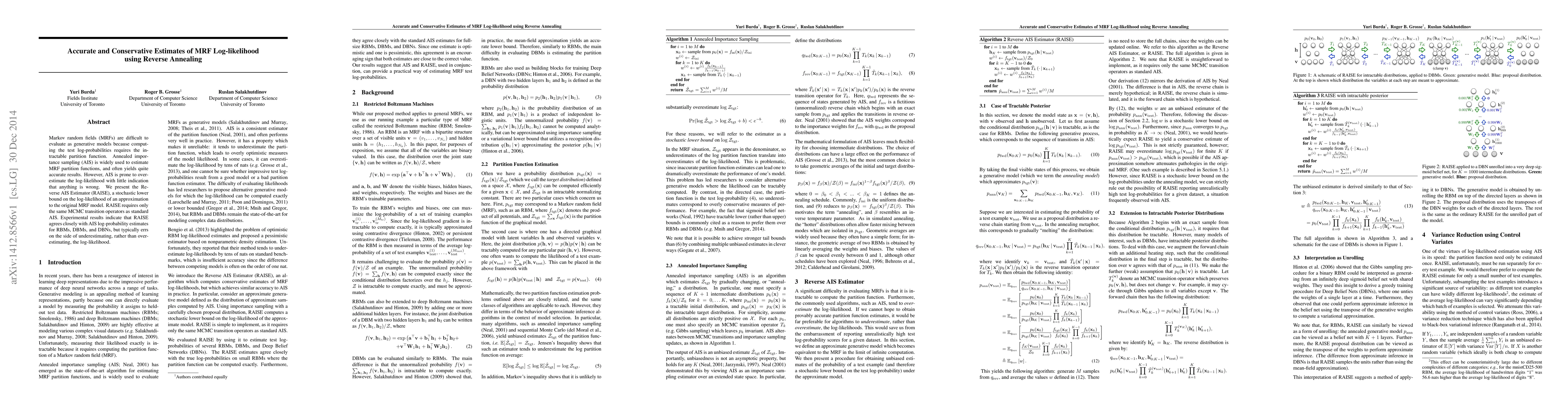 Markov random fields (MRFs) are difficult to evaluate as generative models because computing the test log-probabilities requires the intractable partition function. Annealed importance sampling (AIS) is widely used to estimate MRF partition functions, and often yields quite accurate results. However, AIS is prone to overestimate the log-likelihood with little indication that anything is wrong. We present the Reverse AIS Estimator (RAISE), a stochastic lower bound on the log-likelihood of an approximation to the original MRF model. RAISE requires only the same MCMC transition operators as standard AIS. Experimental results indicate that RAISE agrees closely with AIS log-probability estimates for RBMs, DBMs, and DBNs, but typically errs on the side of underestimating, rather than overestimating, the log-likelihood.