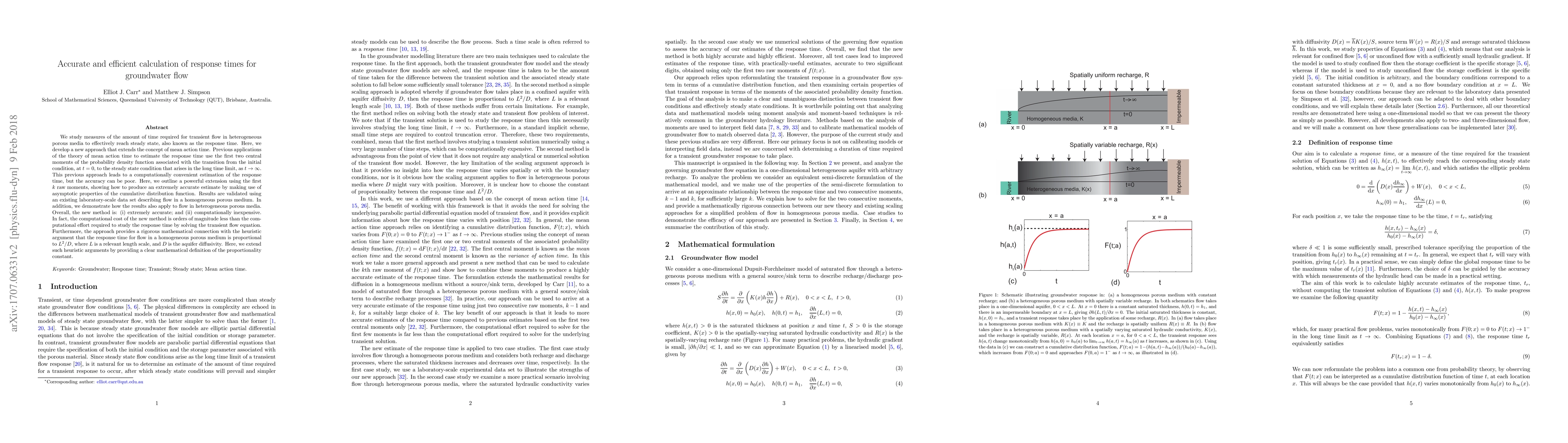 We study measures of the amount of time required for transient flow in heterogeneous porous media to effectively reach steady state, also known as the response time. Here, we develop a new approach that extends the concept of mean action time. Previous applications of the theory of mean action time to estimate the response time use the first two central moments of the probability density function associated with the transition from the initial condition, at $t=0$, to the steady state condition that arises in the long time limit, as $t \to \infty$. This previous approach leads to a computationally convenient estimation of the response time, but the accuracy can be poor. Here, we outline a powerful extension using the first $k$ raw moments, showing how to produce an extremely accurate estimate by making use of asymptotic properties of the cumulative distribution function. Results are validated using an existing laboratory-scale data set describing flow in a homogeneous porous medium. In addition, we demonstrate how the results also apply to flow in heterogeneous porous media. Overall, the new method is: (i) extremely accurate; and (ii) computationally inexpensive. In fact, the computational cost of the new method is orders of magnitude less than the computational effort required to study the response time by solving the transient flow equation. Furthermore, the approach provides a rigorous mathematical connection with the heuristic argument that the response time for flow in a homogeneous porous medium is proportional to $L^2/D$, where $L$ is a relevant length scale, and $D$ is the aquifer diffusivity. Here, we extend such heuristic arguments by providing a clear mathematical definition of the proportionality constant.