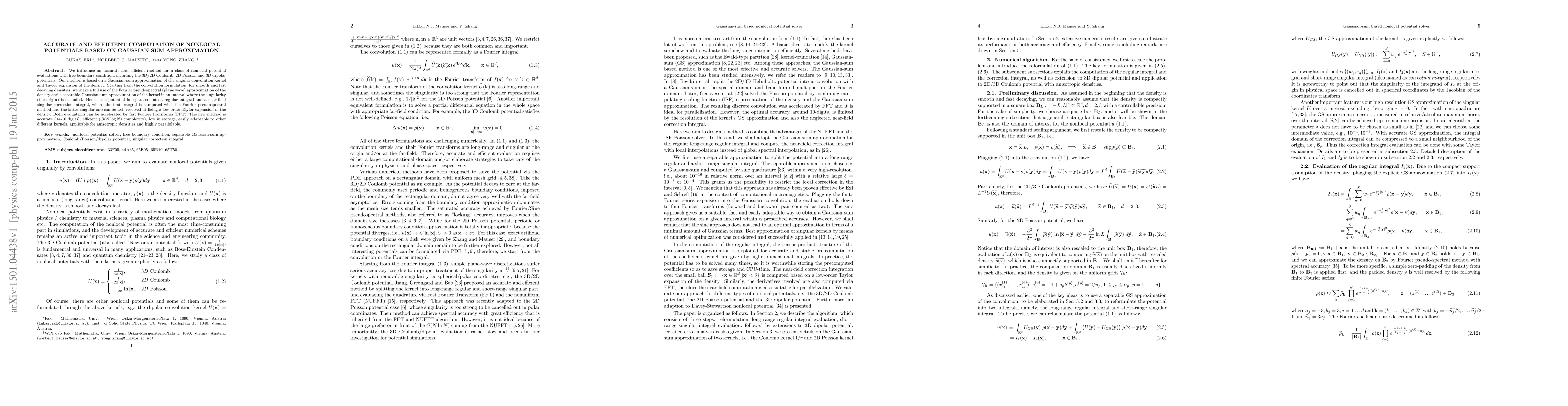 We introduce an accurate and efficient method for a class of nonlocal potential evaluations with free boundary condition, including the 3D/2D Coulomb, 2D Poisson and 3D dipolar potentials. Our method is based on a Gaussian-sum approximation of the singular convolution kernel and Taylor expansion of the density. Starting from the convolution formulation, for smooth and fast decaying densities, we make a full use of the Fourier pseudospectral (plane wave) approximation of the density and a separable Gaussian-sum approximation of the kernel in an interval where the singularity (the origin) is excluded. Hence, the potential is separated into a regular integral and a near-field singular correction integral, where the first integral is computed with the Fourier pseudospectral method and the latter singular one can be well resolved utilizing a low-order Taylor expansion of the density. Both evaluations can be accelerated by fast Fourier transforms (FFT). The new method is accurate (14-16 digits), efficient ($O(N \log N)$ complexity), low in storage, easily adaptable to other different kernels, applicable for anisotropic densities and highly parallelable.