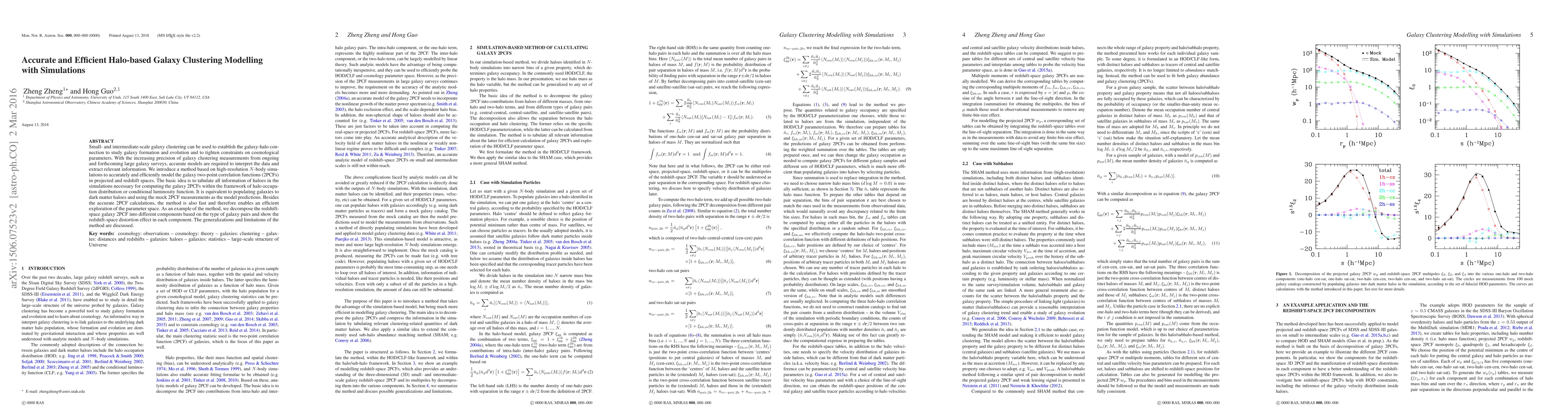This paper introduces a high-resolution N-body simulation-based method to accurately and efficiently model galaxy clustering, focusing on galaxy two-point correlation functions (2PCFs). The method populates galaxies into dark matter haloes and uses mock 2PCF measurements for model predictions, enabling fast exploration of cosmological parameters.