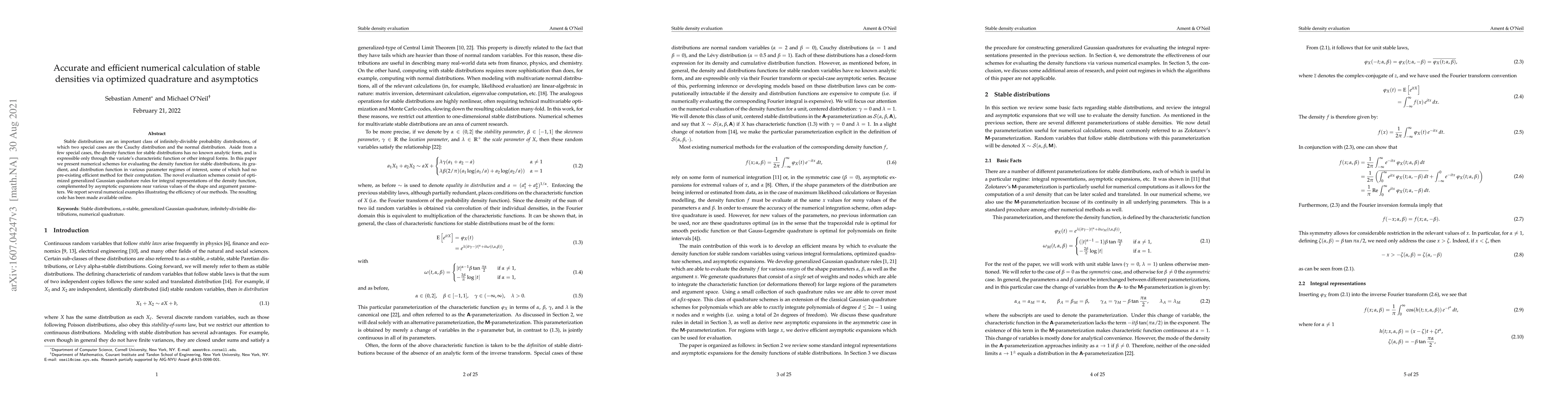 Researchers developed efficient numerical methods for calculating stable distribution densities, gradients, and distributions in various parameter regimes, improving computational efficiency and accessibility.