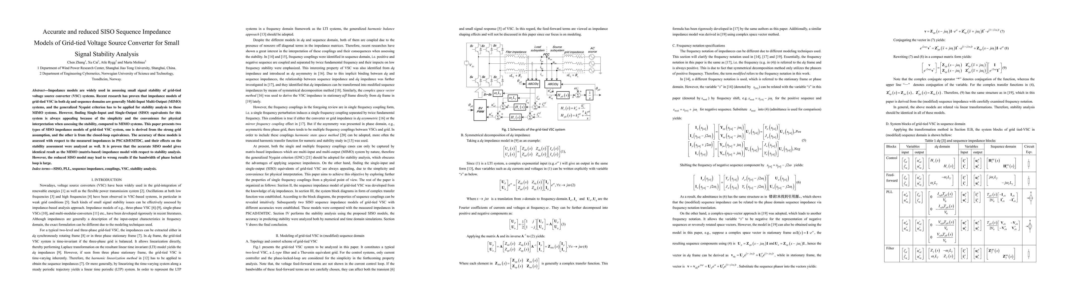 This paper develops accurate and reduced Single-Input Single-Output (SISO) sequence impedance models for grid-tied voltage source converters, demonstrating their equivalence to Multi-Input Multi-Output (MIMO) models for small signal stability analysis, with caution noted for reduced models in high bandwidth scenarios.