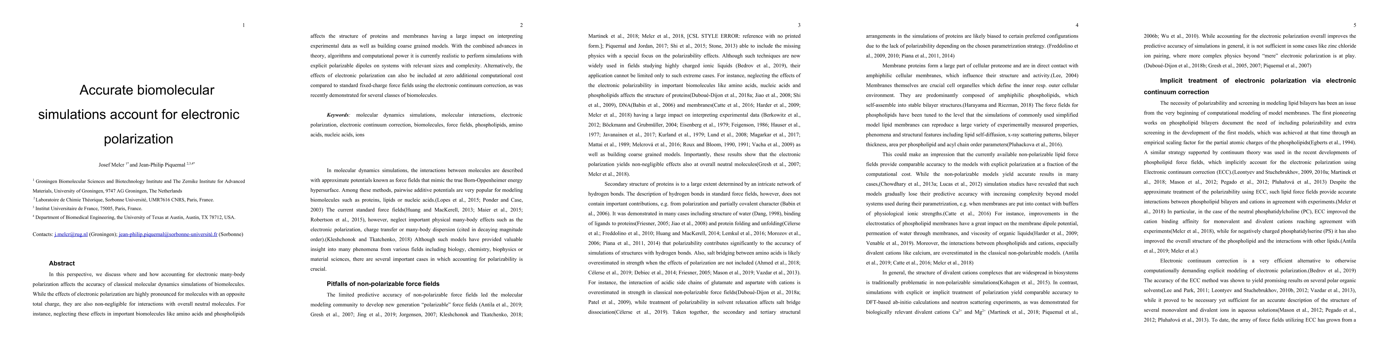 Simulations of biomolecules can now accurately account for electronic polarization, improving predictions of protein structure and membrane behavior. This advance is made possible by advances in theory, algorithms, and computational power, offering new insights into biomolecular interactions.